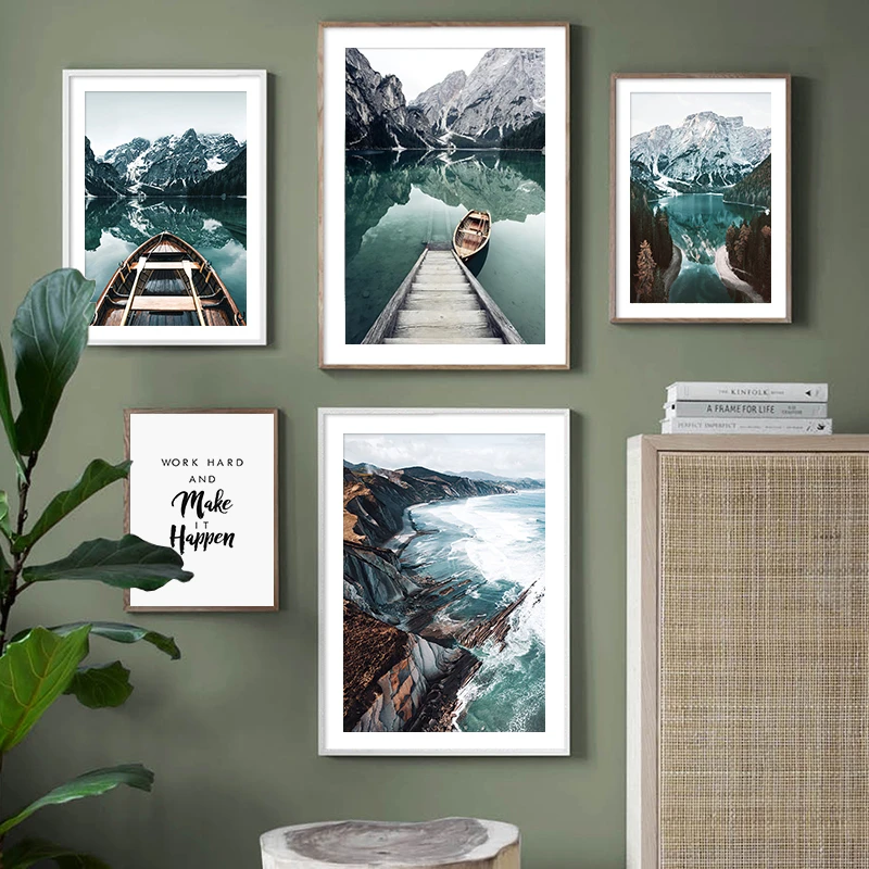 Скандинавский стиль, природа, Горный пейзаж, плакат в скандинавском стиле, принт, озеро, лодка, холст, настенное искусство, картины для украшения дома