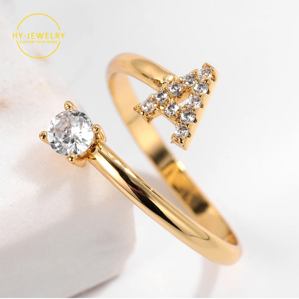 Модное кольцо с надписью, Золотое регулируемое Открытое кольцо с инициалами, кольца с алфавитом для женщин, креативные кольца на палец, модный Вечерние