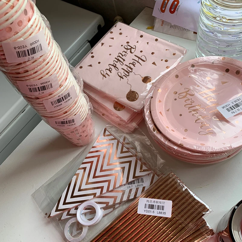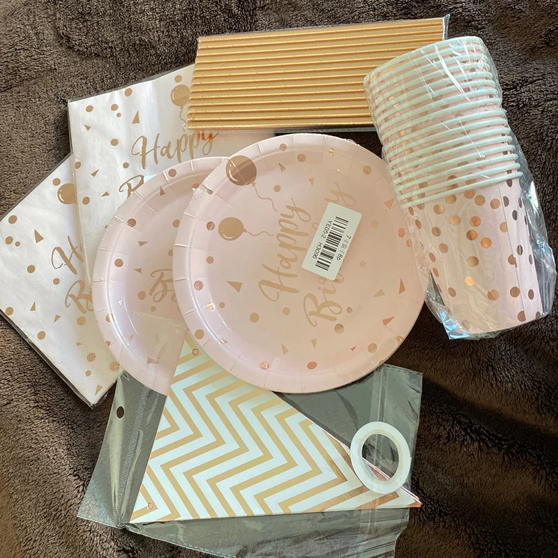 78 шт Розовое золото набор одноразовой посуды День рождения Декор п...