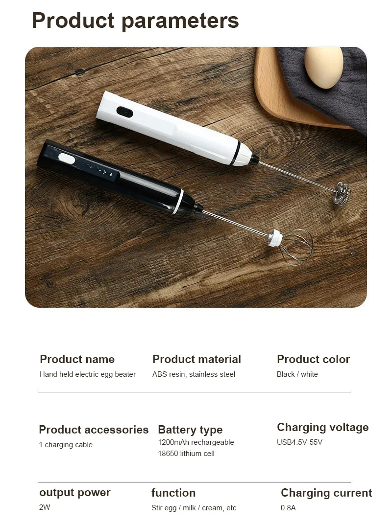 1 * яйцо, 1 * воздушный шар, 1 * вспенивание молока, 1 * USB кабель для зарядки