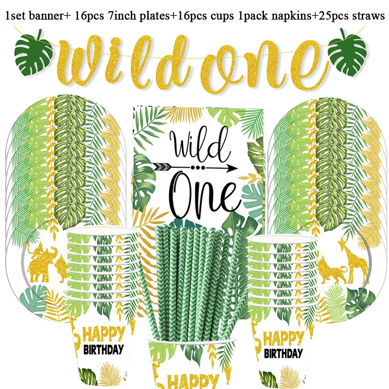 Сафари джунгли вечерние украшения и надписью Wild One День рождения...