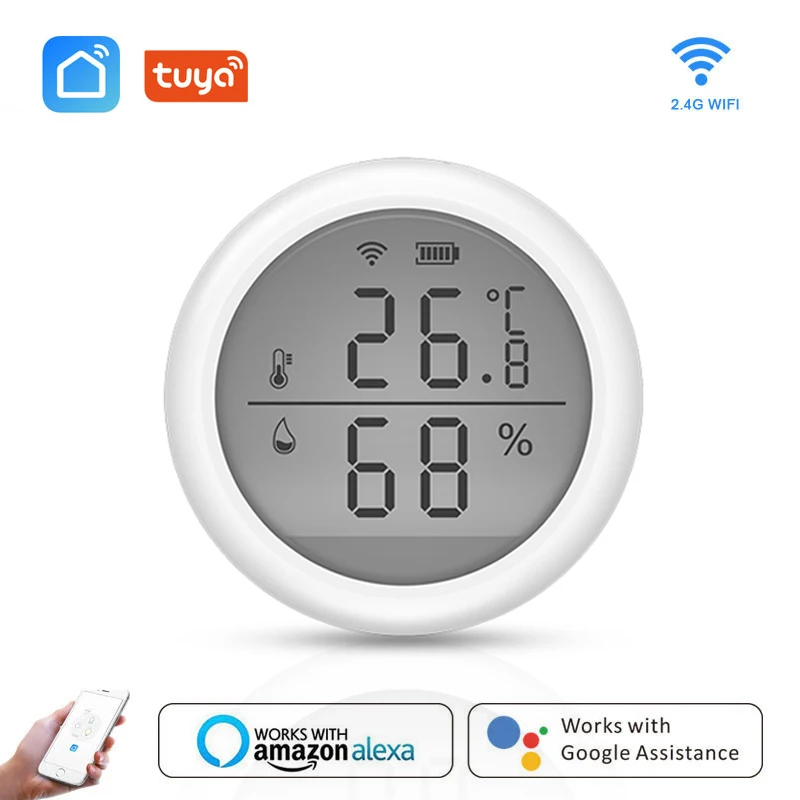 Датчик температуры и влажности Tuya Wi-Fi, комнатный гигрометр, термометр с поддержкой приложения Alexa Google Smart Home Smart Life