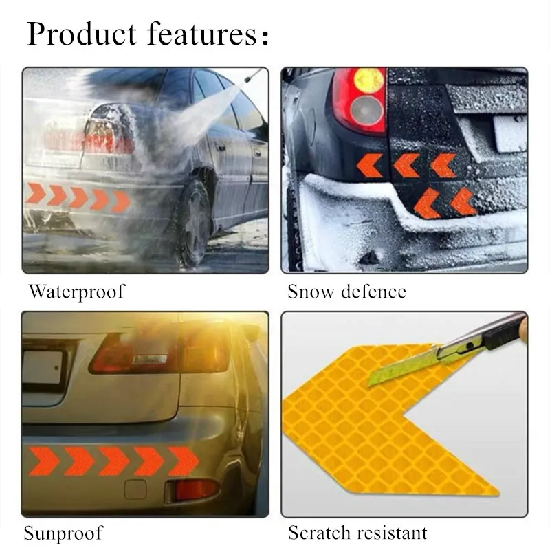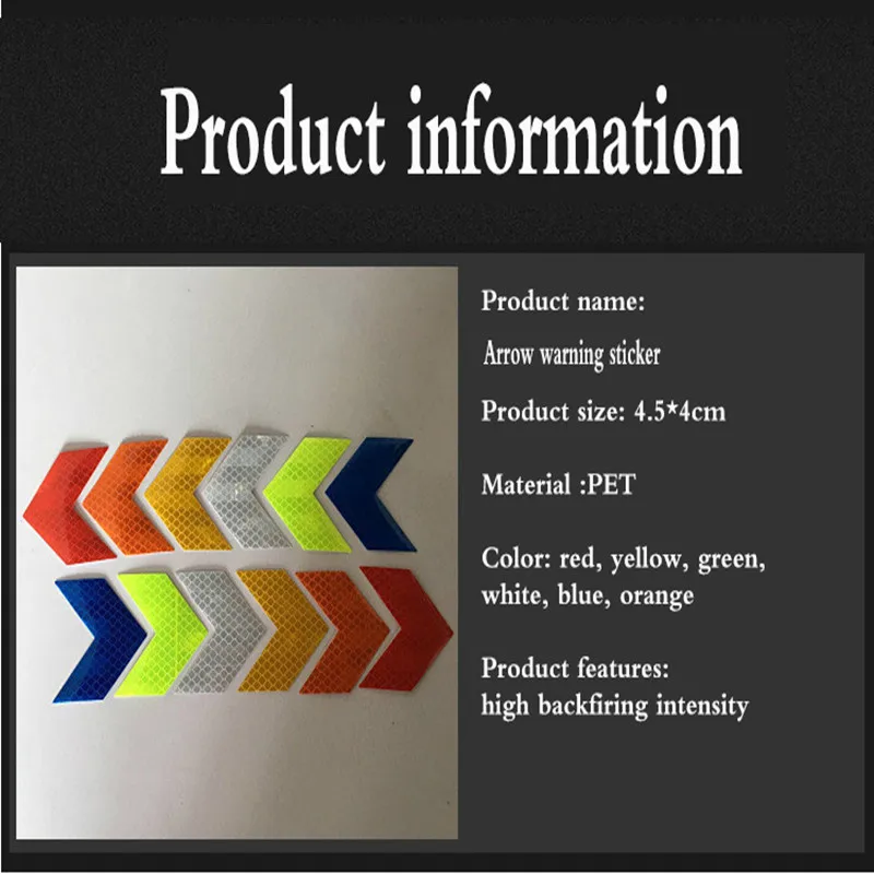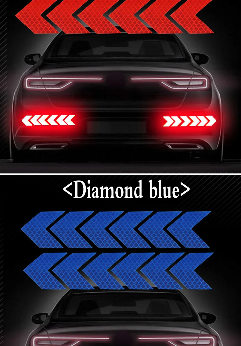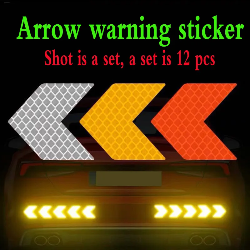 12 шт.компл. Автомобильная наклейка светоотражающая знак со стрелкой Предупреждение ющая наклейка безопасности для автомобиля бампер багажник отражатель опасность лента для стайлинга автомобилей