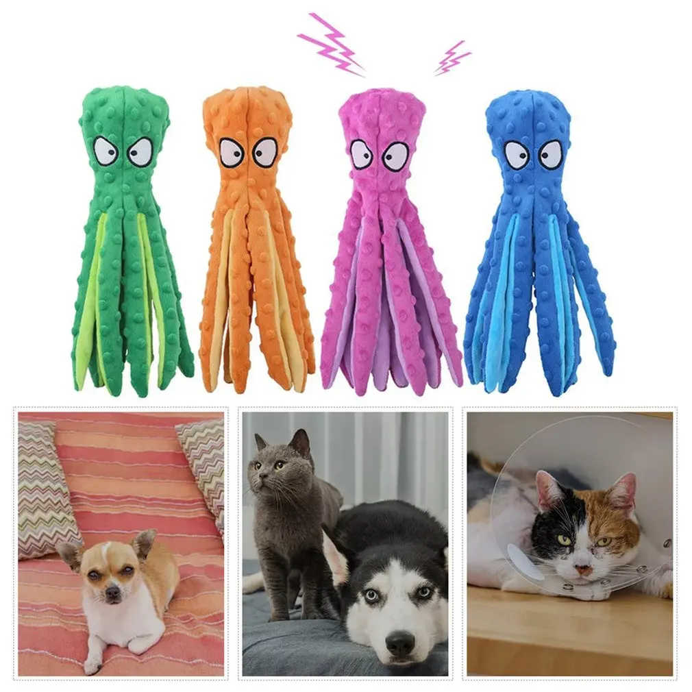 Игрушка-осьминог, пищащая игрушка для собак, кошек, устойчивая к укусам, вокал, пищалка, осьминог, жевательная игрушка для домашних животных