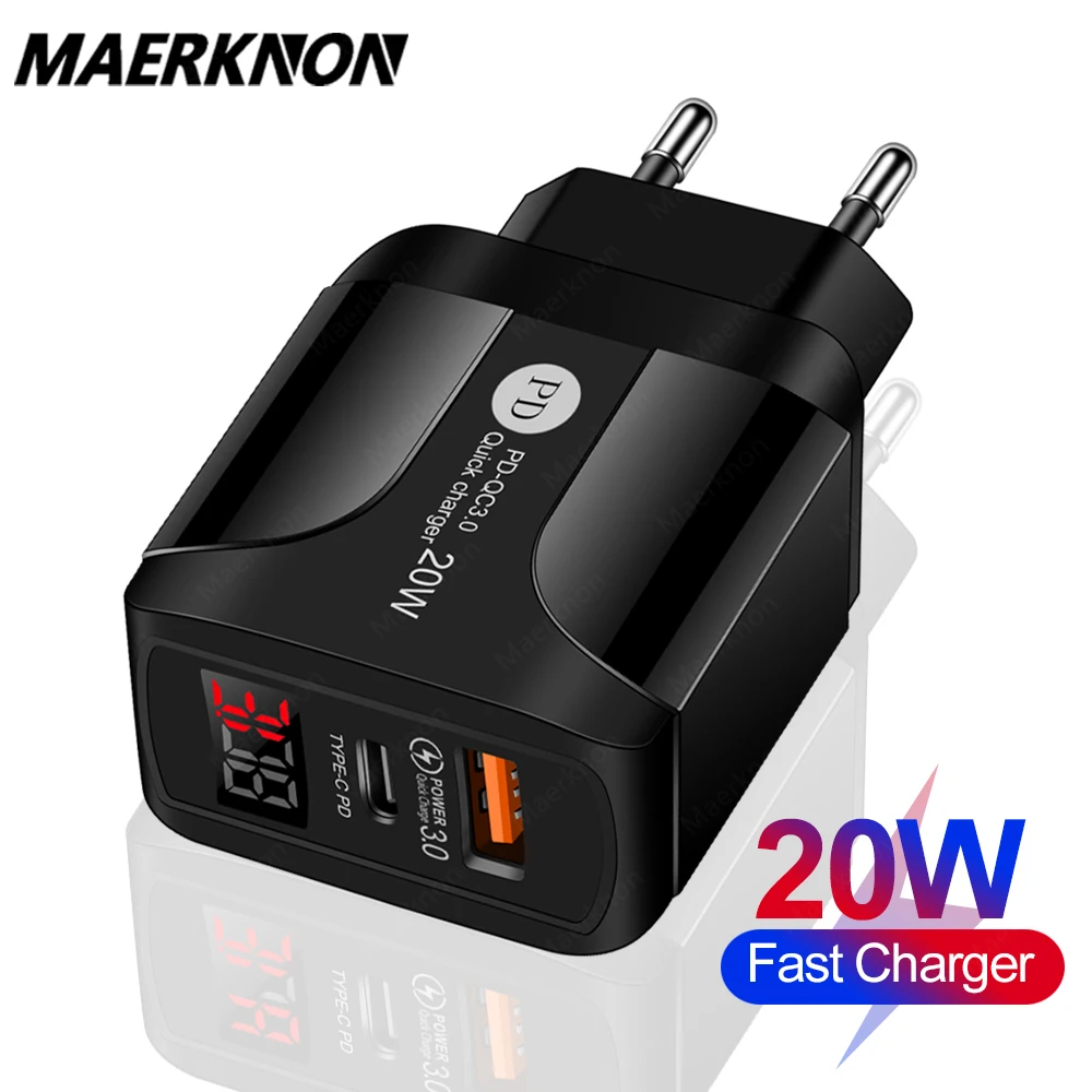 PD 20 Вт USB Type C зарядное устройство LED быстрое зарядное устройство для телефона адаптер для iPhone 12 AirPods iPad Huawei Xiaomi Samsung Quick charge 3,0 4,0