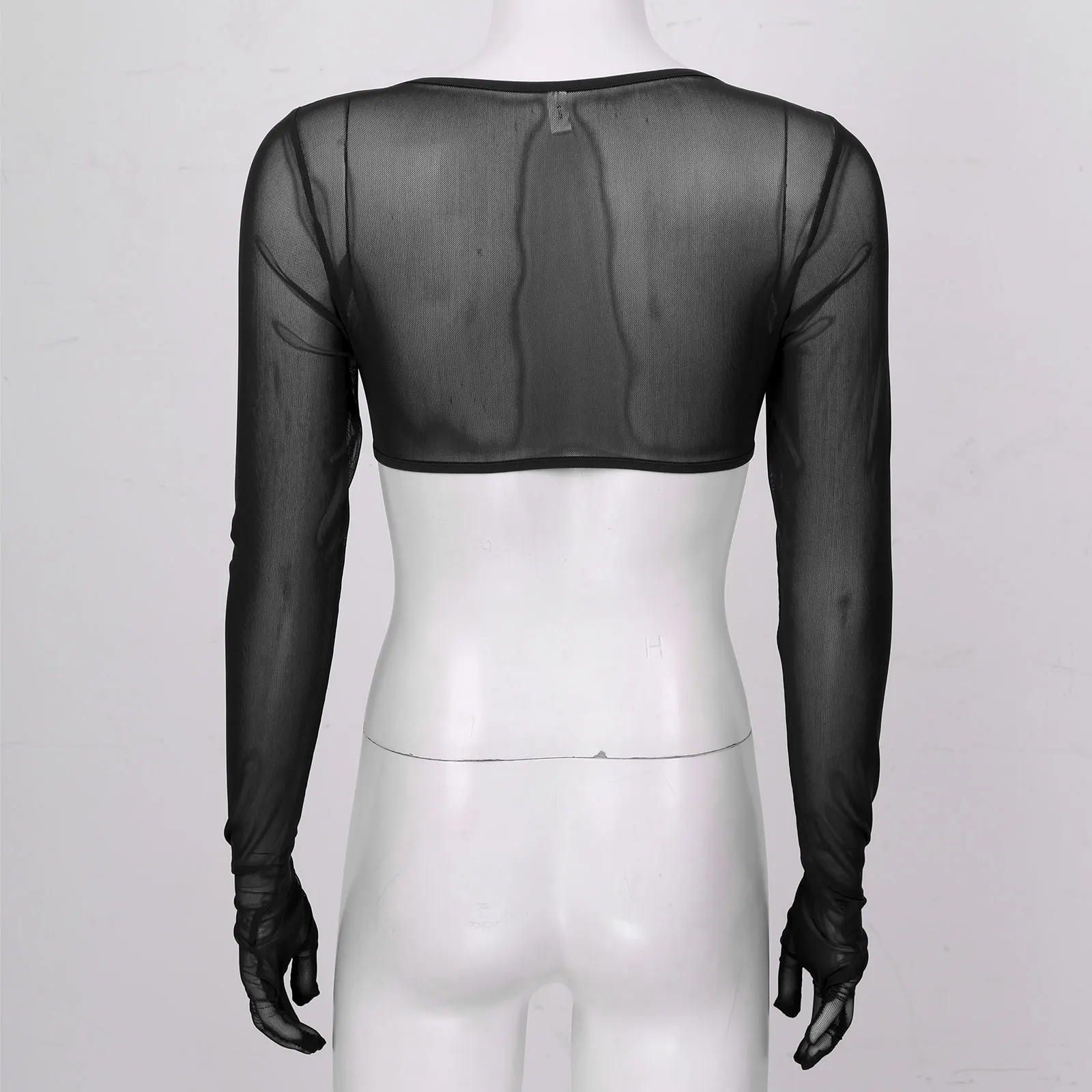 Перчатки женские прозрачные с открытой грудью, с длинным рукавом, с пряжкой спереди, сетчатые кроп-топы, для ночного клуба