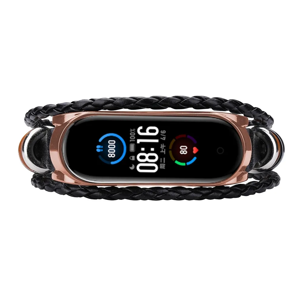 Модный кожаный браслет с бисером Плетеный ремешок для часов Xiaomi Mi Band 5