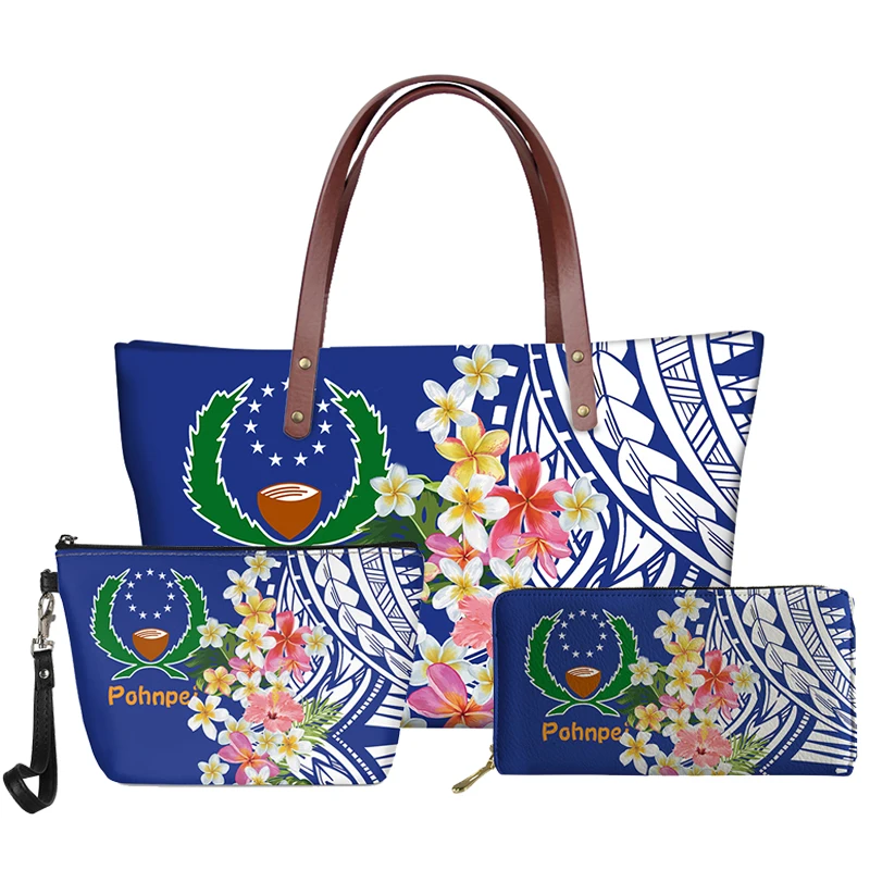 Роскошные сумки, комплект из 3 предметов, летняя сумка через плечо с Полинезийским принтом Понпеи и кошелек из искусственной кожи, большой дорожный кошелек