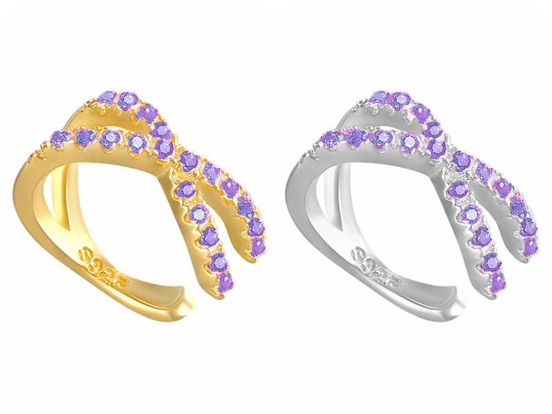 Серьги-кольца женские из серебра 925 пробы с фиолетовым цирконием