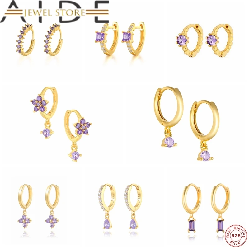 Женские серьги-кольца из стерлингового серебра 925 пробы с фиолетовым цирконием, ювелирные украшения в Корейском стиле