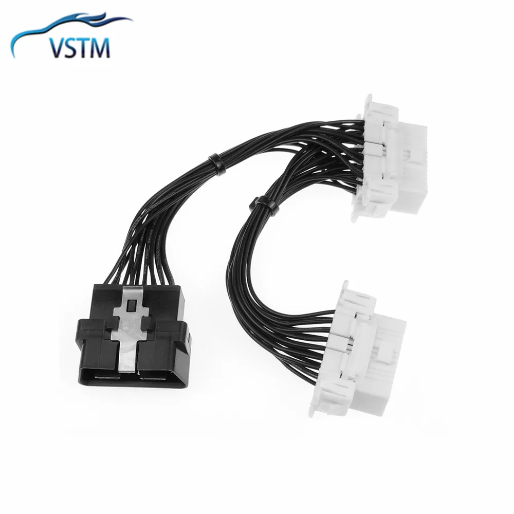 Высококачественный плоский + тонкий As Noodle OBDII OBD 2 OBD2 16 Pin ELM327 Штекерный к двойному гнезду Y сплиттер локоть удлинитель соединительный кабель