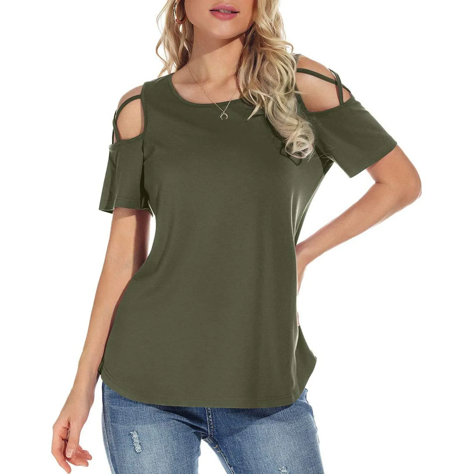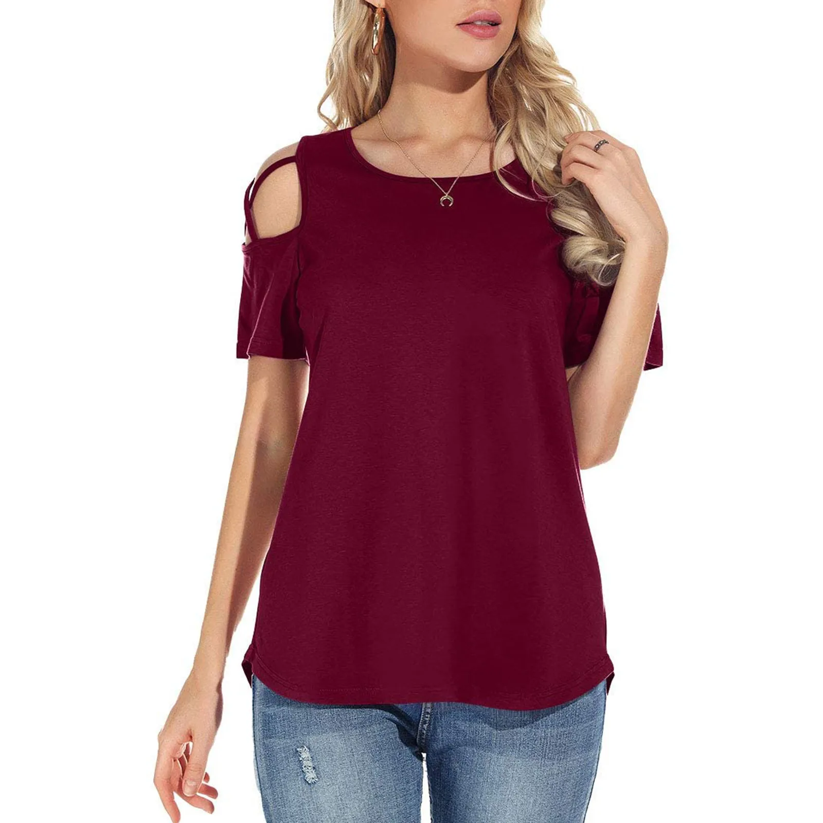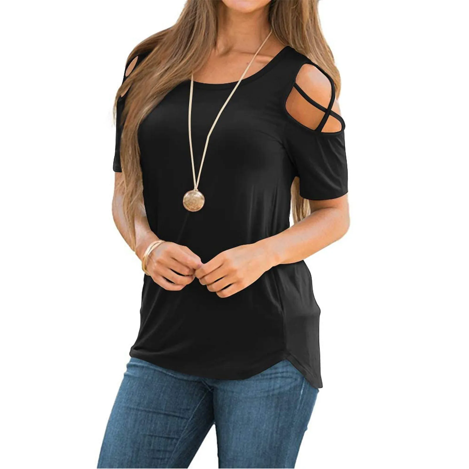 Блузка женская летняя, с открытыми плечами и коротким рукавом