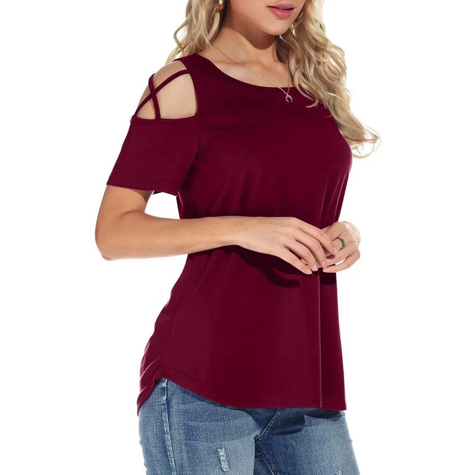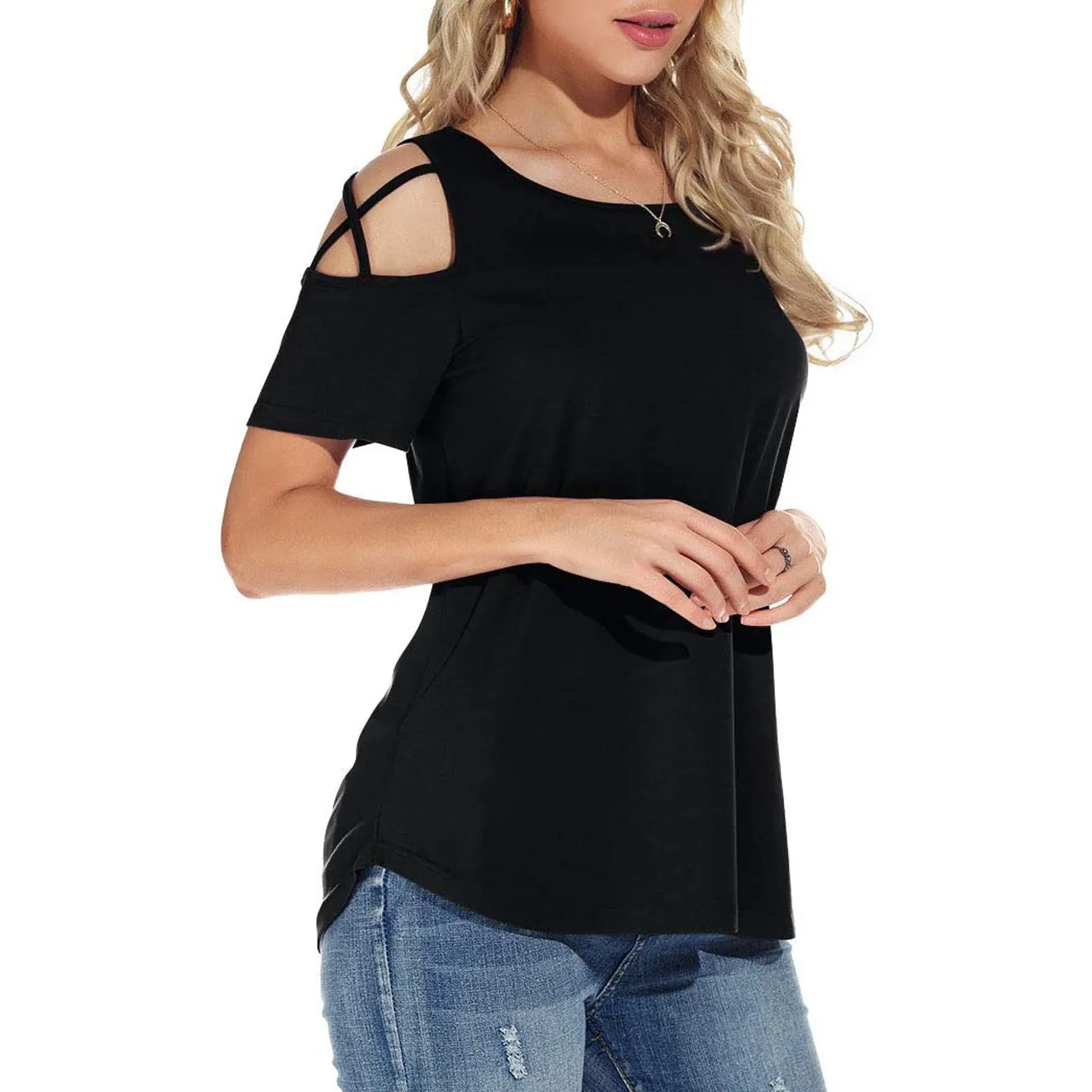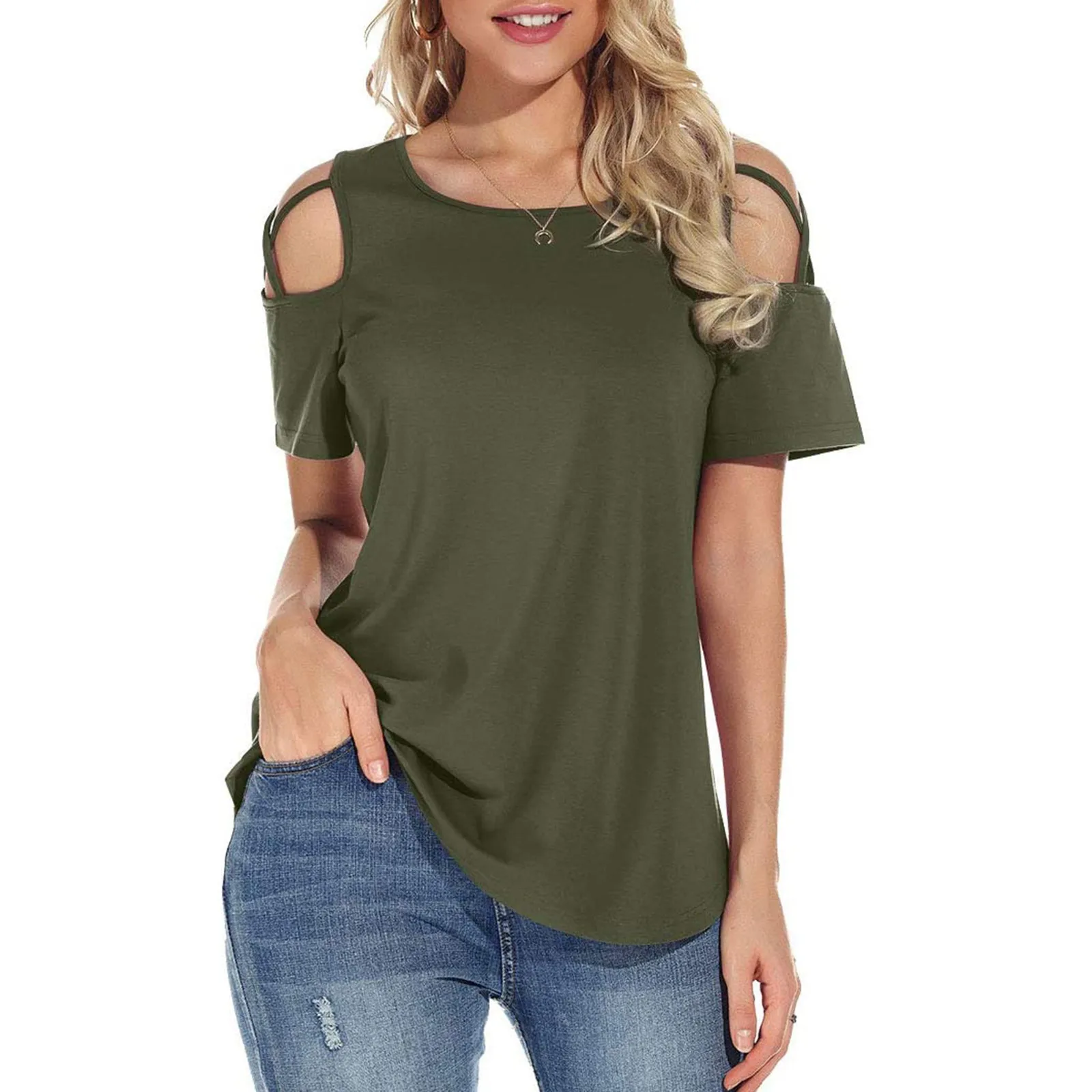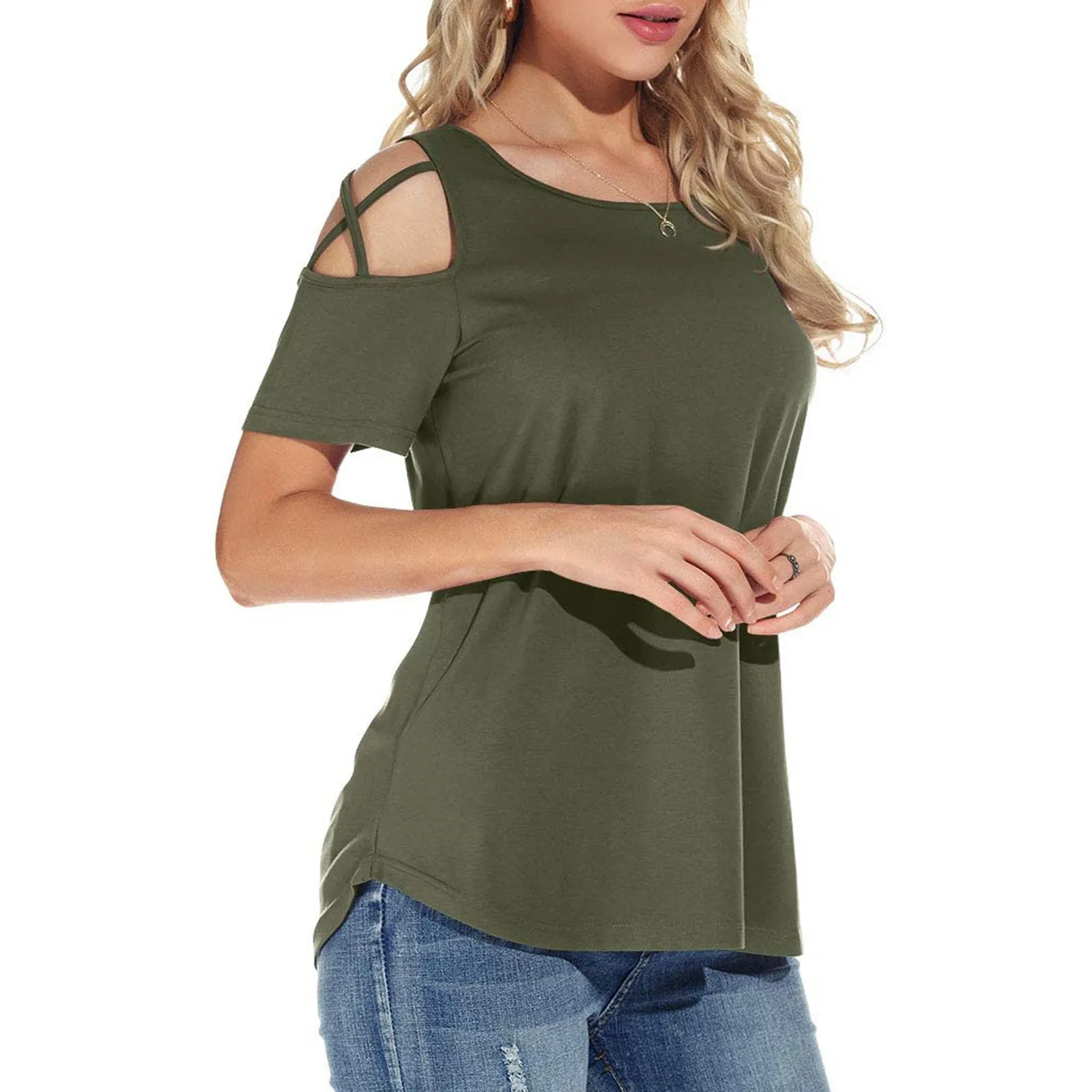 Блузка женская летняя, с открытыми плечами и коротким рукавом