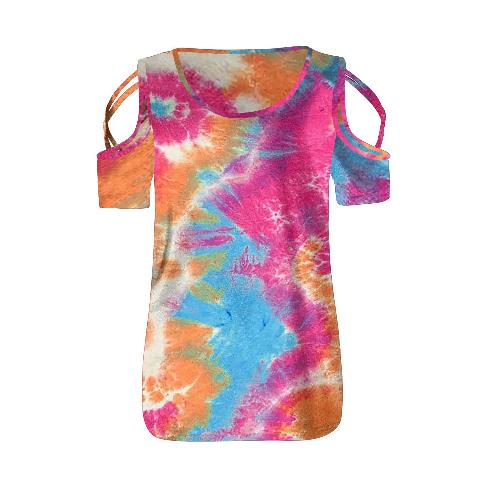 Женская летняя футболка с короткими рукавами и принтом на бретелях с открытыми плечами, топы, блузки