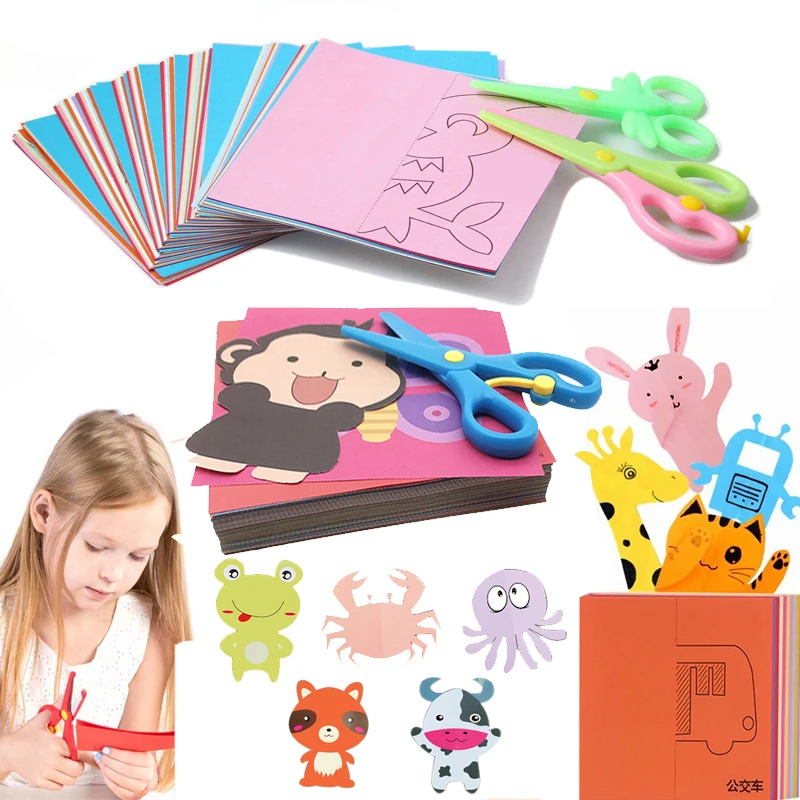 48 шт. с изображением мультипликационных персонажей для детей DIY Красочные бумаги резки Складные Игрушки для детского сада детские развивающие Искусство ремесло с ножницами Инструменты подарки