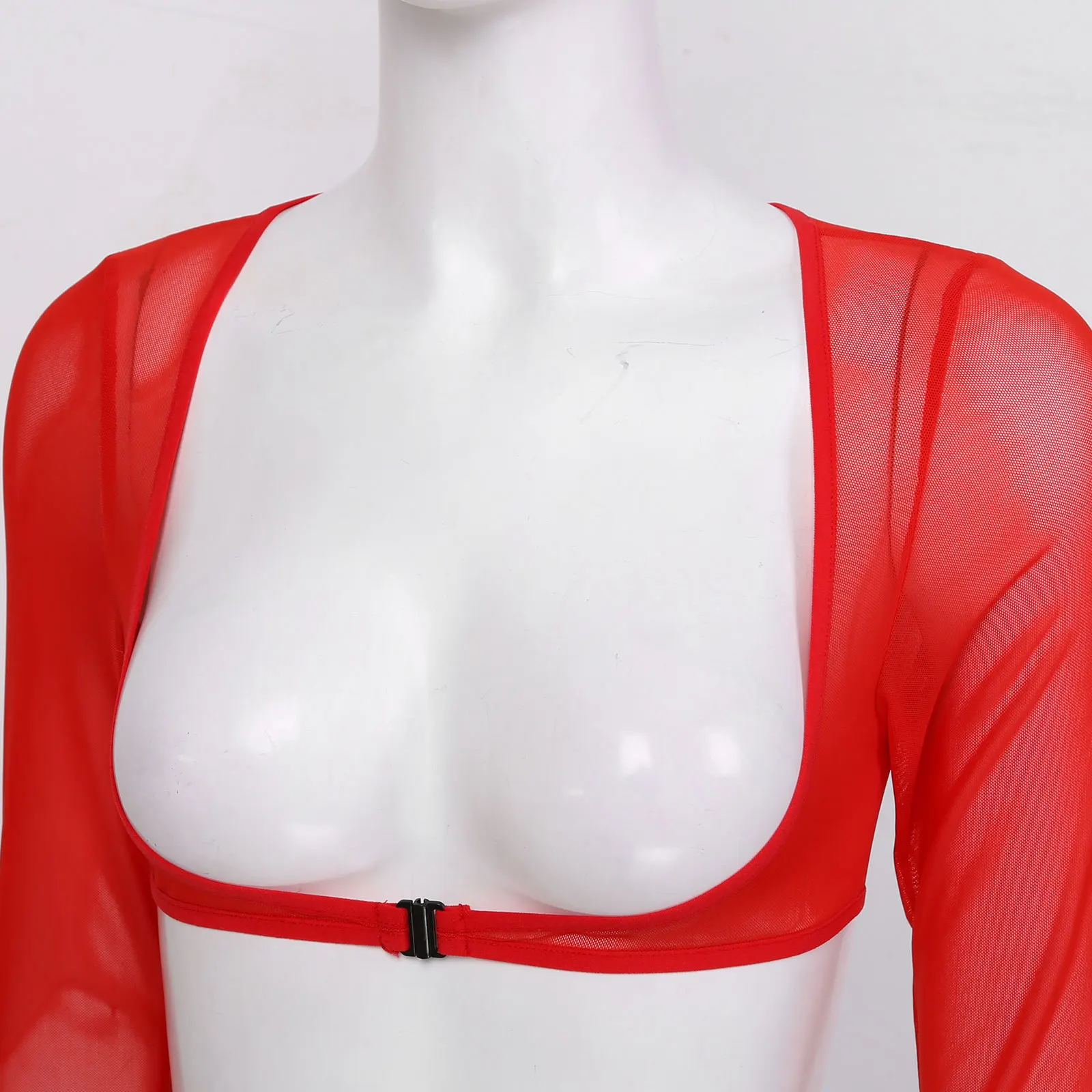 Женские прозрачные сетчатые перчатки, топы, женский короткий топ с длинным рукавом и открытой передней пряжкой, Клубная одежда для невесты, нижнее белье для новечерние