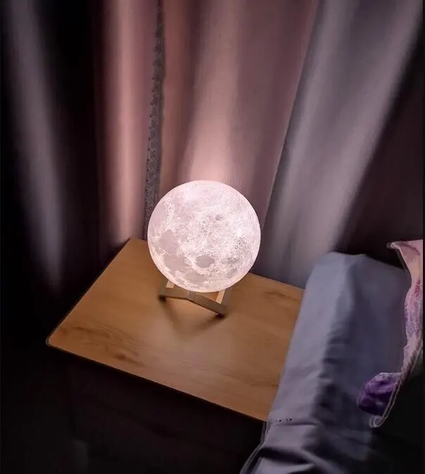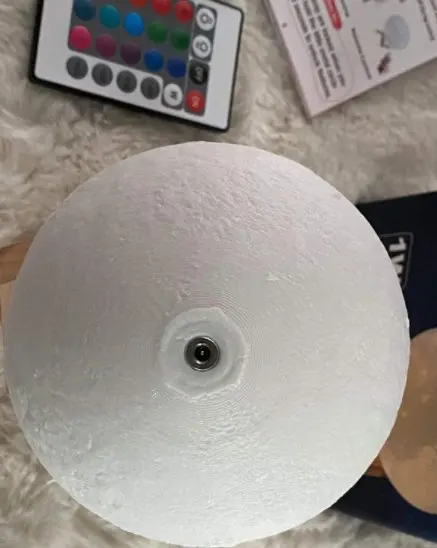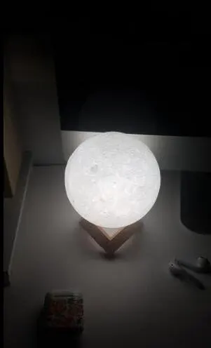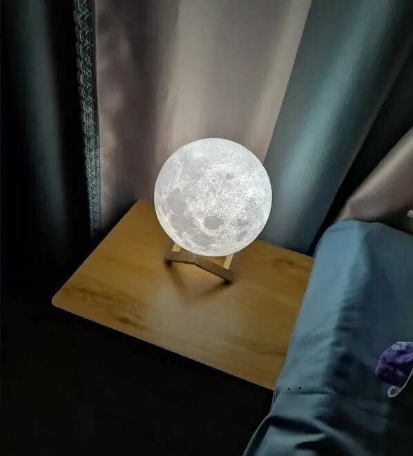 My daughter really likes this replica of the moon that changes color. The colors are so bright and vibrant. It comes with a remote control with various colors and several different settings. She especially likes the setting where it fades into the next color. It comes with a plug-in charger, which is very good, we don’t have to rely on batteries. The bracket attached to it is very artistic and brings aesthetic impact. The design is just right, not too big to block the light of the moon. My daughter likes to put the moon on her dressing table. She drove it all night. it's beautiful.