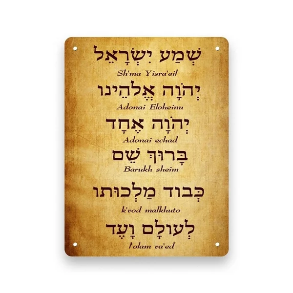 Металлический оловянный плакат Shema Shma Женская молитва иврит и английский винтажный Ретро ржавчинный декоративный плакат на стену