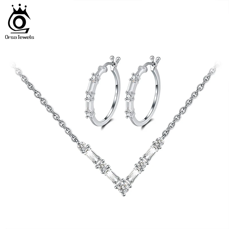 ORSA JEWELS серебро 925 ожерелья серьги Ювелирные наборы для женщин простые элегантные ювелирные изделия годовщина Свадьба Подарок для вечеринки OSS55