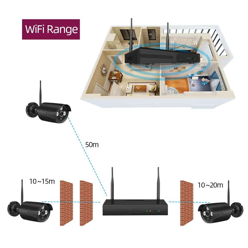 Беспроводные соединения между камерами и NVR, беспроводная передача до 50 метров (без препятствий)