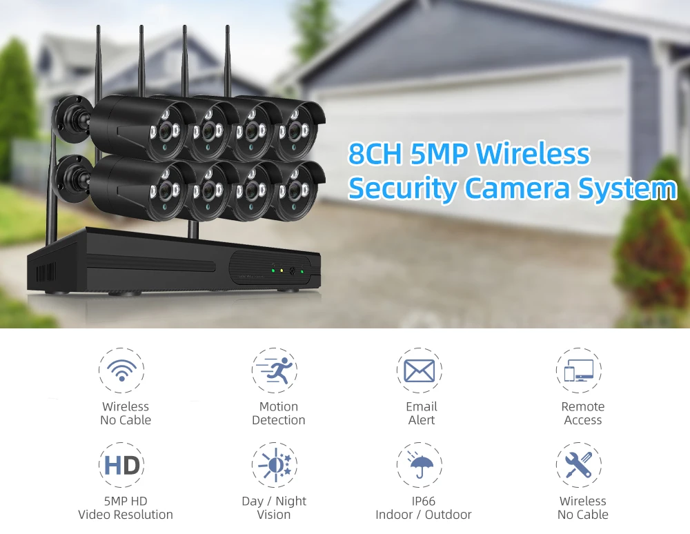 Комплект видеонаблюдения 5MP CCTV Wifi 8CH наружная водонепроницаемая IP-камера безопасности Wifi комплект беспроводной системы 8 каналов NVR Kit