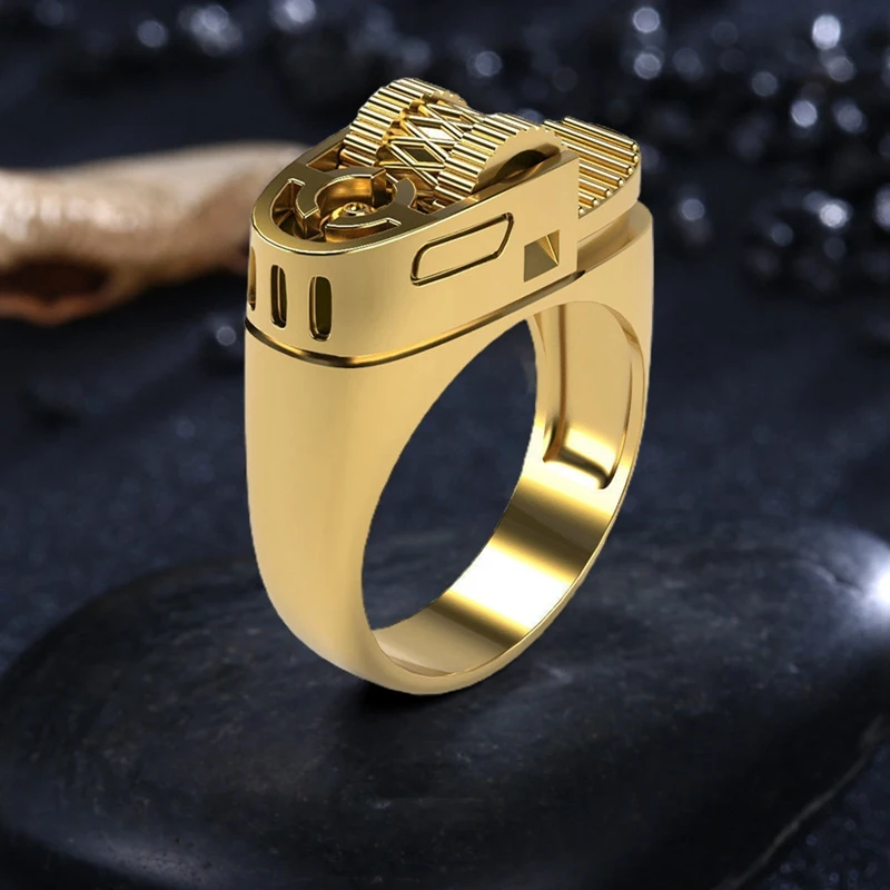 Уникальное мужское кольцо с золотым кольцо прикуривателя, обручальн...