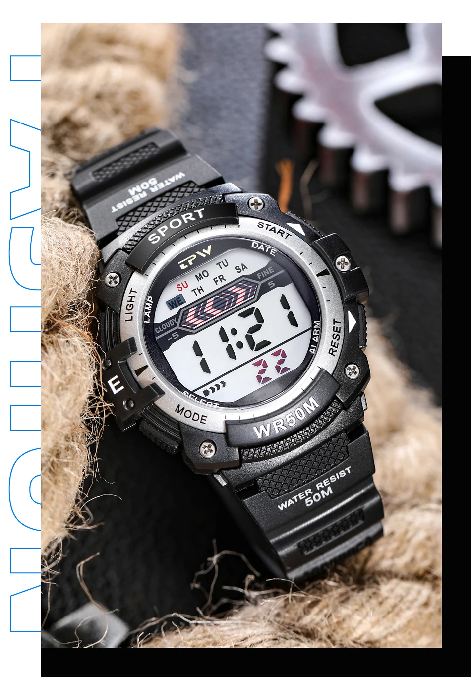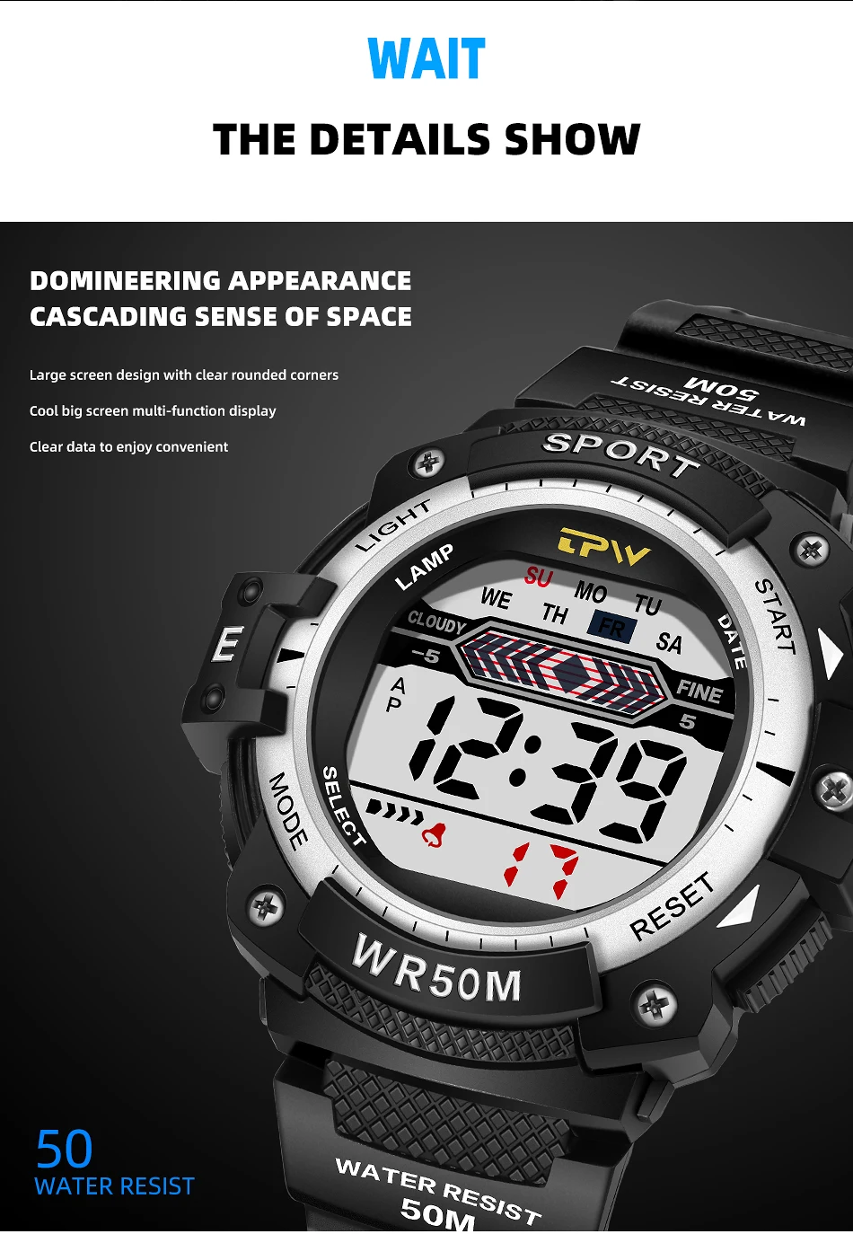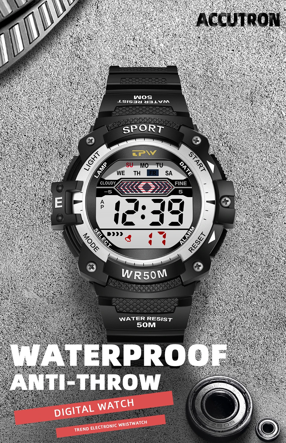 50 метров водостойкие мужские цифровые часы 2 года автономной работы Спорт на открытом воздухе Альпинизм