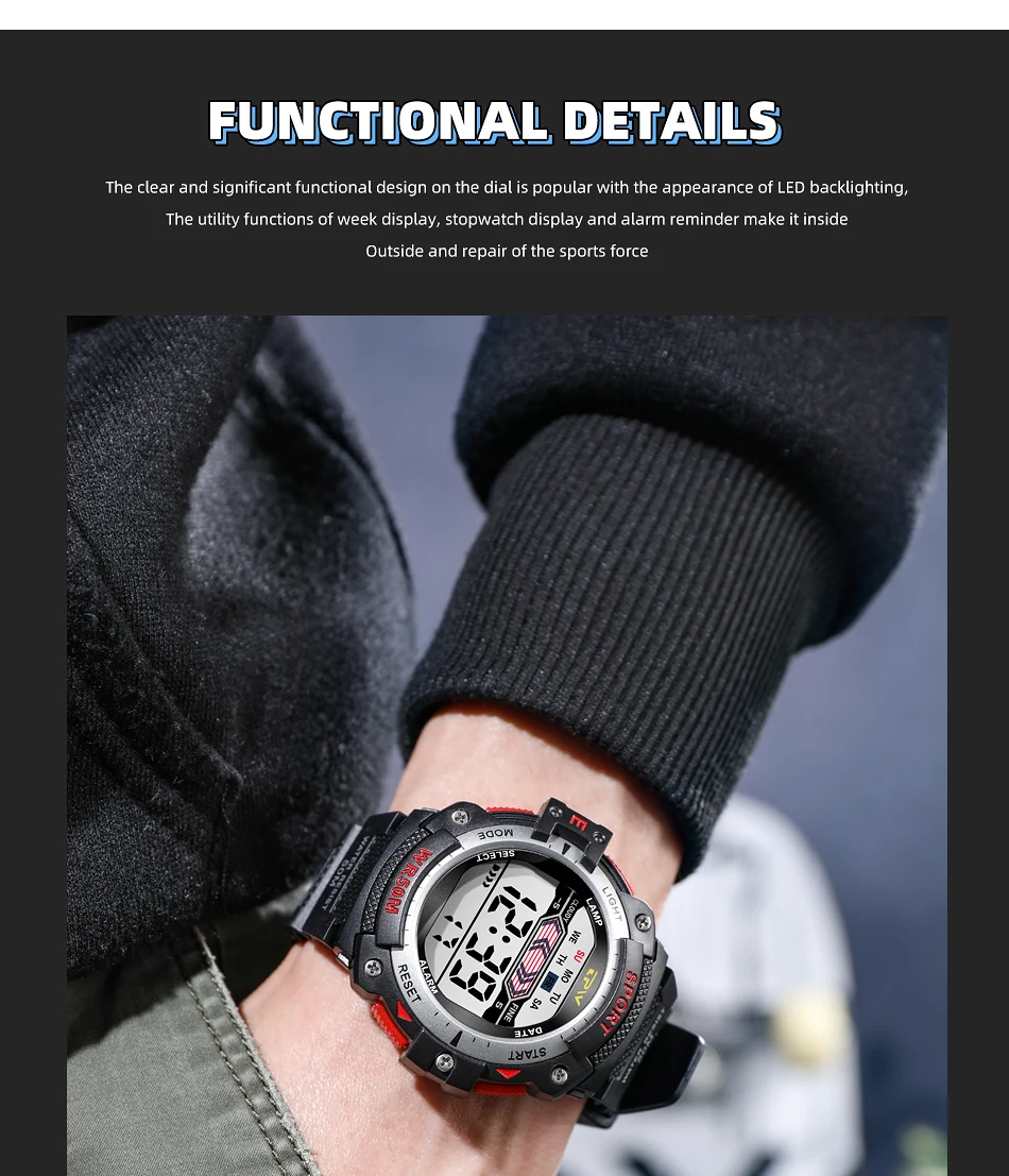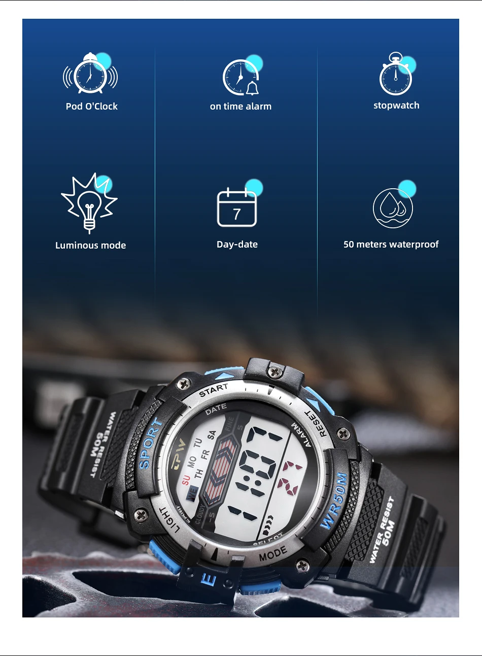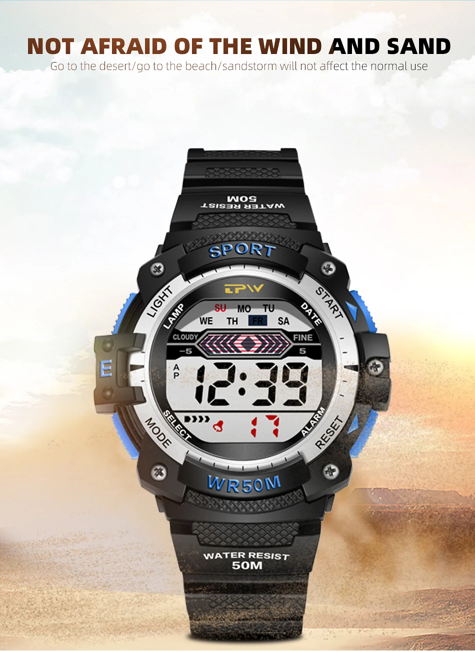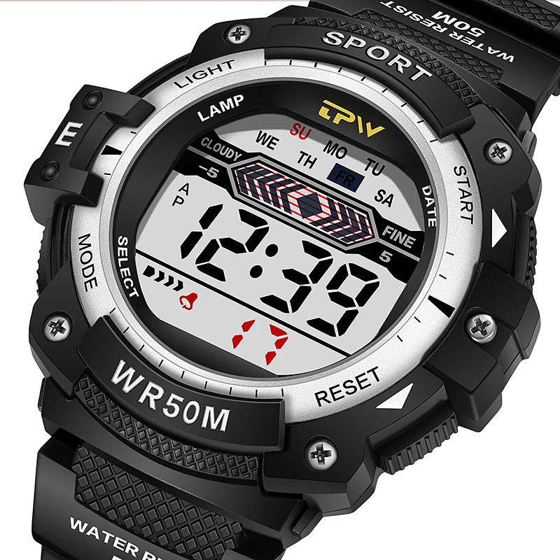 50 метров водостойкие мужские цифровые часы 2 года автономной работы Спорт на открытом воздухе Альпинизм