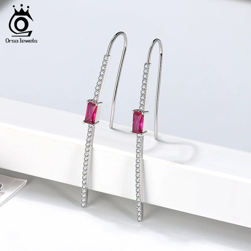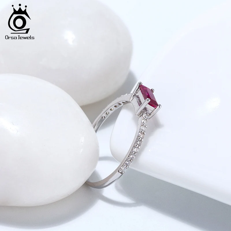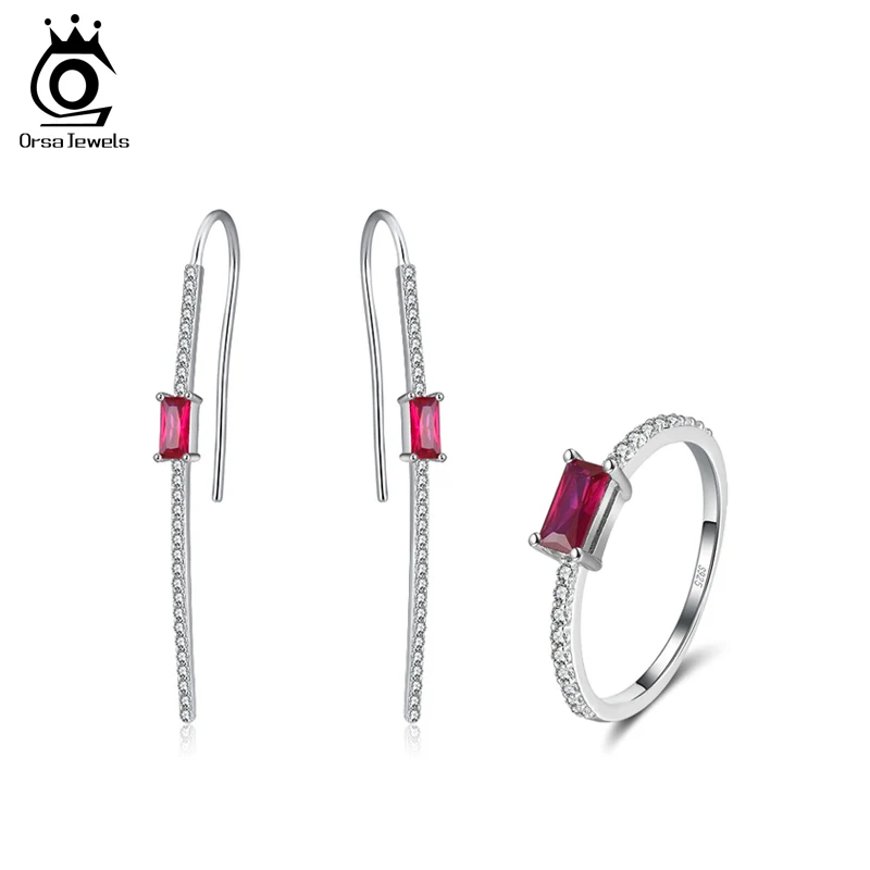 Ювелирные изделия ORSA JEWELS для женщин, наборы уникальных свадебных украшений с кольцами и сережками с красным кубическим цирконием AAAA, свадебные аксессуары, OSS72