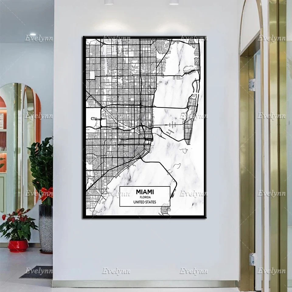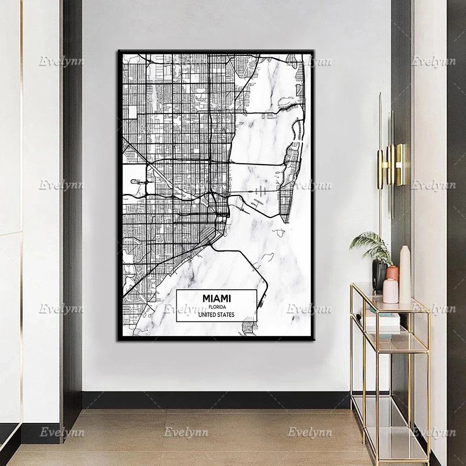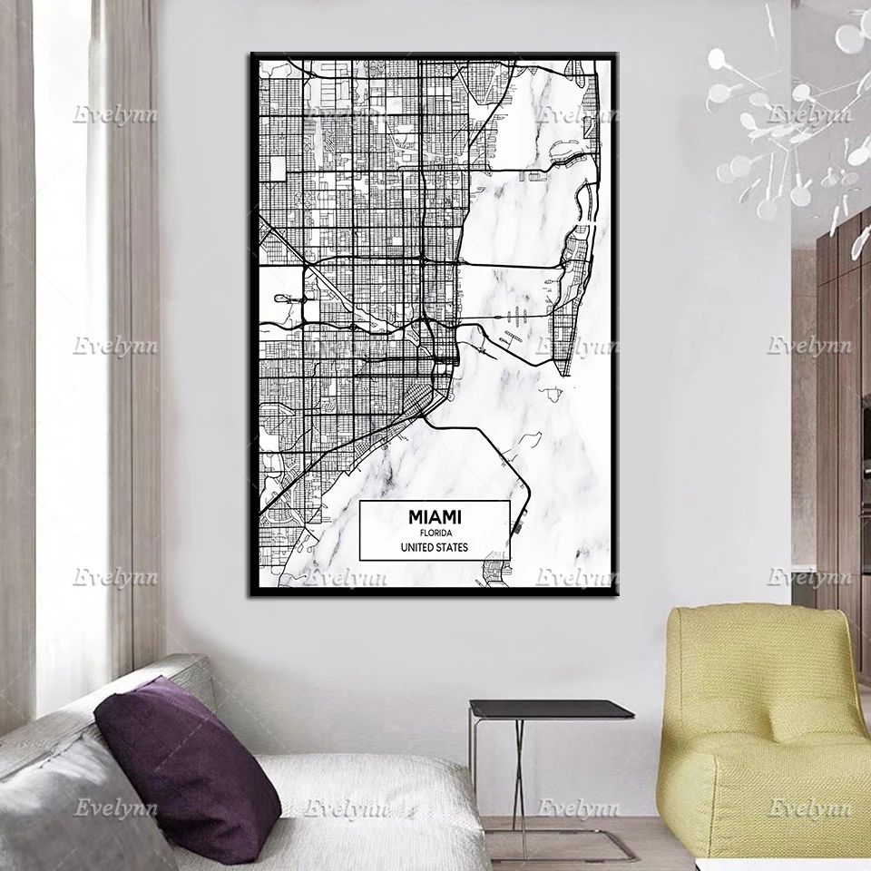 Карта Майами-мраморпоп-арткарта искусствафотография и принты на холсте настенные картины для гостиной домашний декор