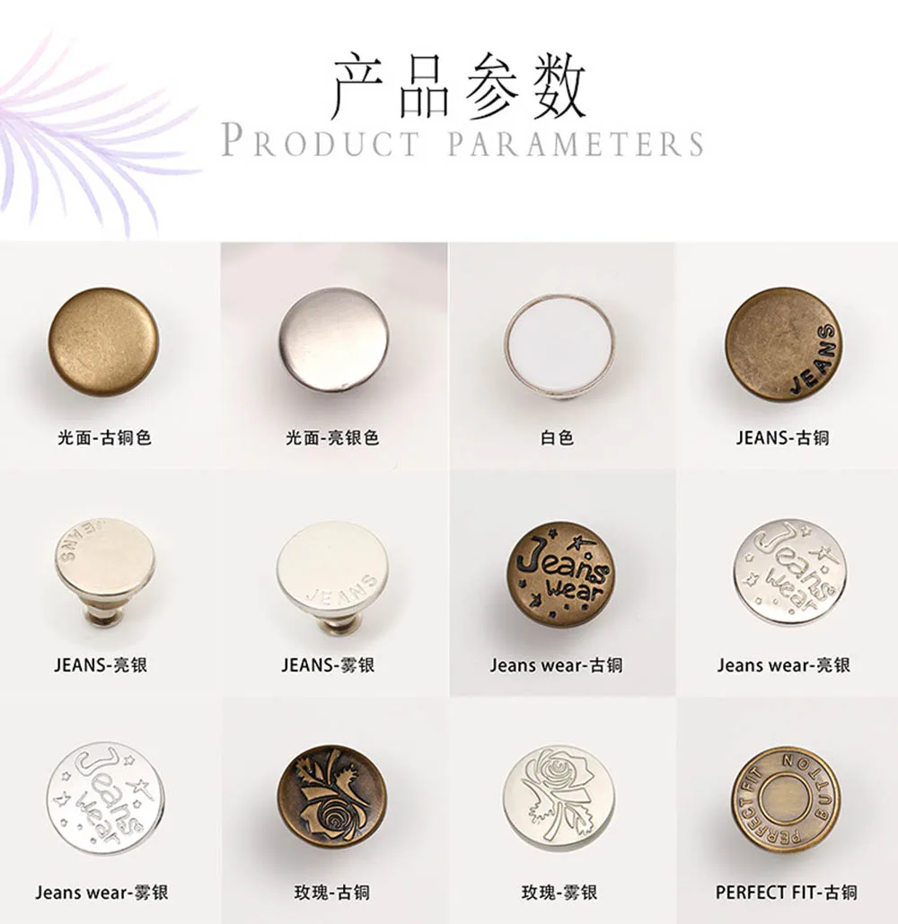 3 шт., съемные металлические пуговицы, застежка на брюки, булавка для джинсов, выдвижная пуговица, без шва, идеально подходит для уменьшения талии