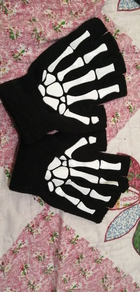 Теплые вязаные перчатки для взрослых, однотонные акриловые перчатки на полпальца, перчатки с защитой головы скелета человека, велосипедные Нескользящие перчатки с принтом