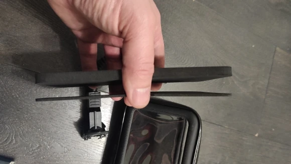 Крепление к мотоциклу очень прочное, но крепление мобильного телефона выглядит немного хрупким и дает очень мало уверенности. Он делает свою работу, но я поставлю Ремешок безопасности на случай, если телефон скачет.