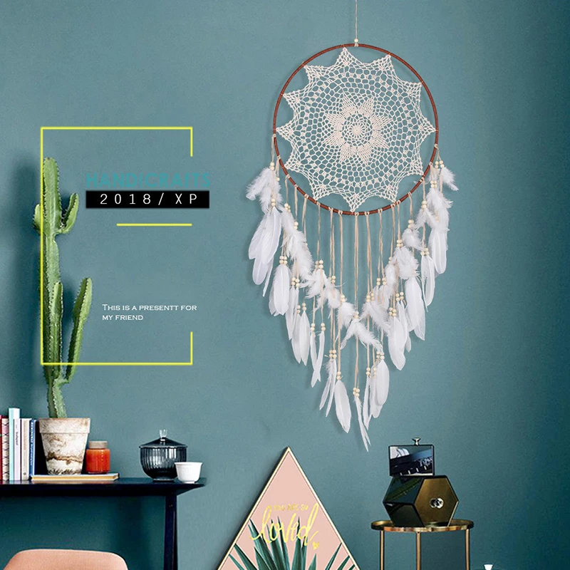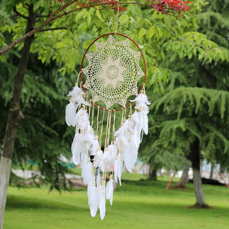Макраме кулон в виде Ловца снов Nordic Стиль дом перо орнамент украшения для сада, детские игрушки, креативные, Музыкальная подвеска