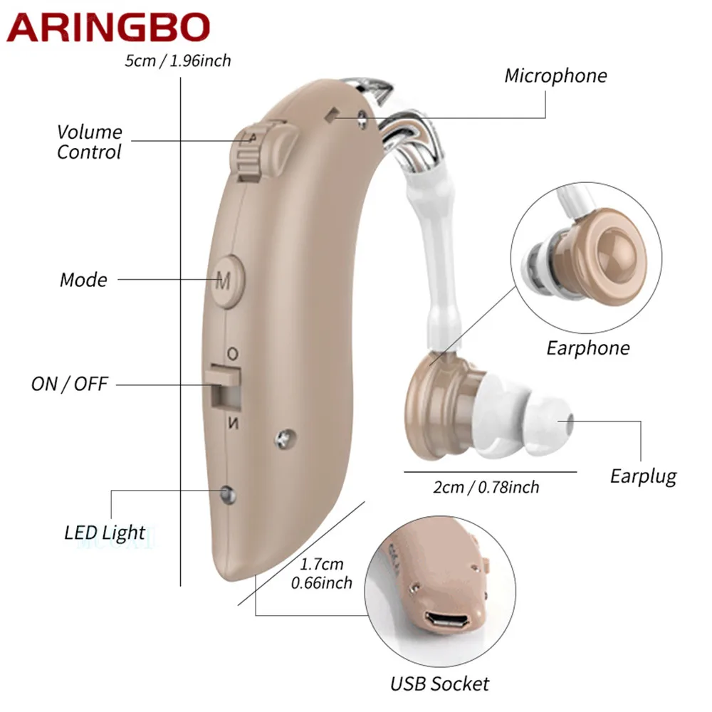 Мини перезаряжаемый слуховой аппарат, цифровой слуховой аппарат BTE с регулируемым тоном, усилитель звука, портативный цифровой слуховой аппарат для глухих пожилых людей