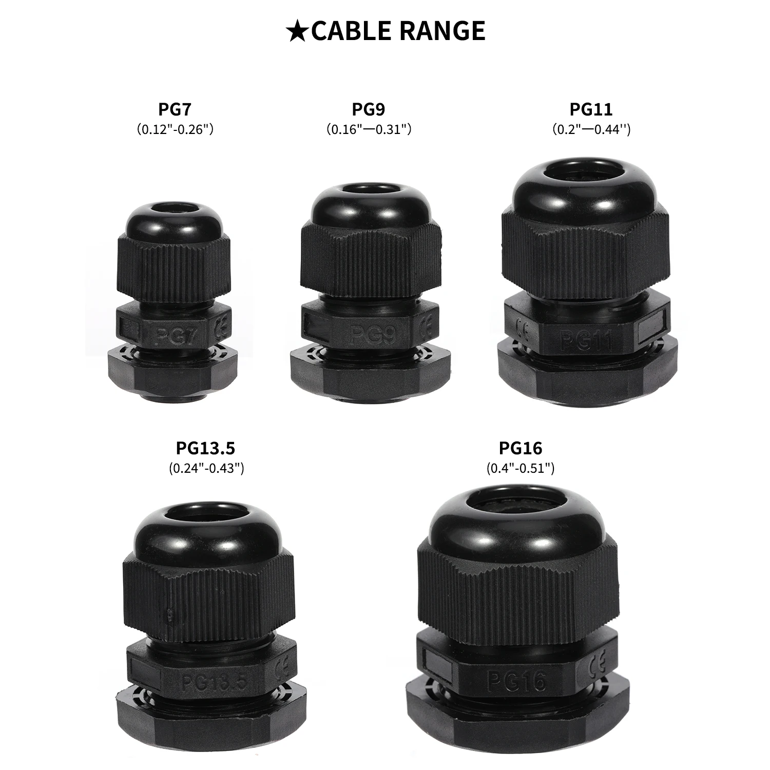 Комплект нейлоновых кабельных втулок, 10 шт., водонепроницаемые Ip68 Кабельные втулки, регулируемые стопорные гайки, Pg7 Pg9 Pg11 Pg13.5 Pg16