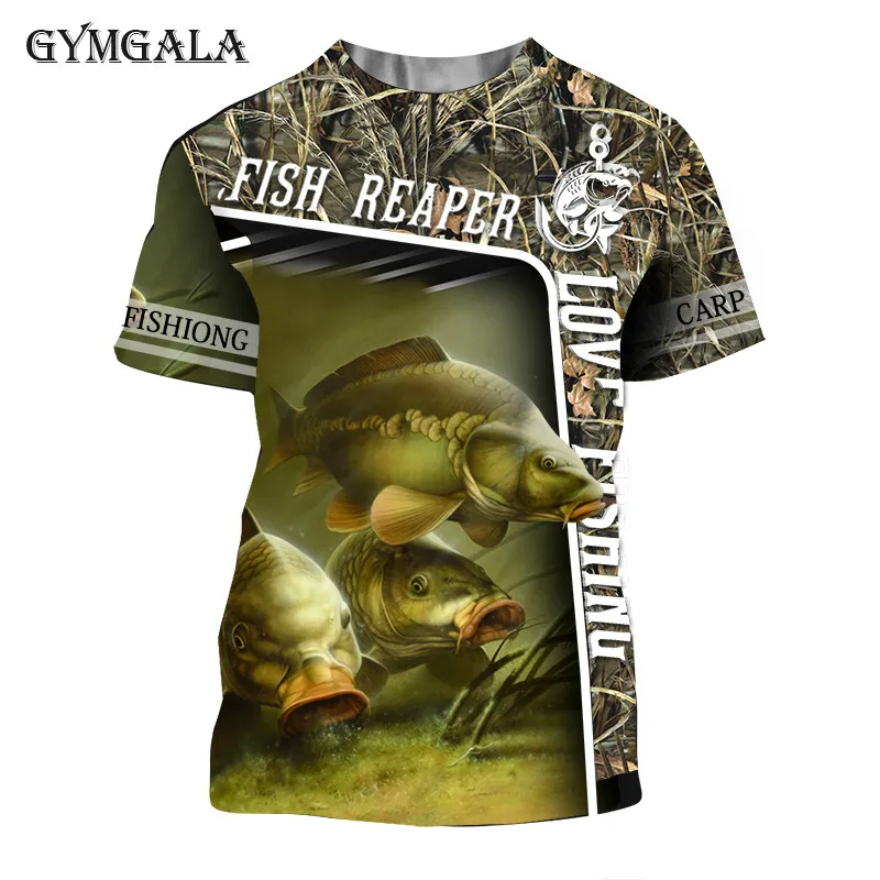 Повседневная модная футболка для ловли карпа с 3D принтом, Мужская ...