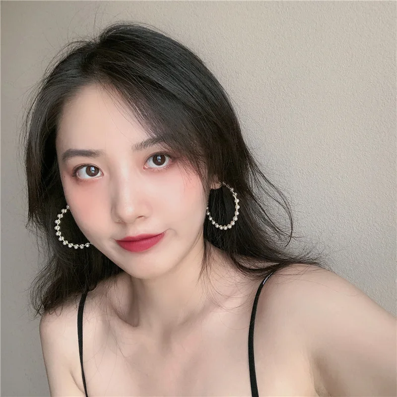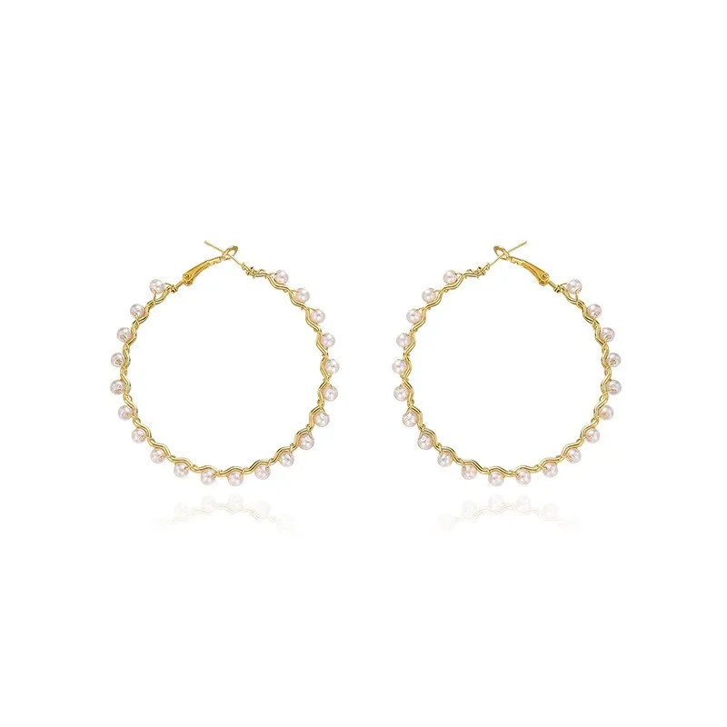 Простой золото Цвет металлические жемчужные серьги в виде колец, мода большой круг обручи серьги для женщин вечерние ювелирные изделия