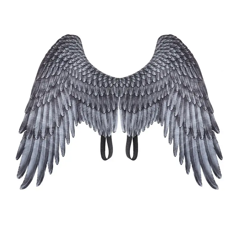 Взрослые Дети Хэллоуин черные белые нетканые перья Крылья Ангела зл...