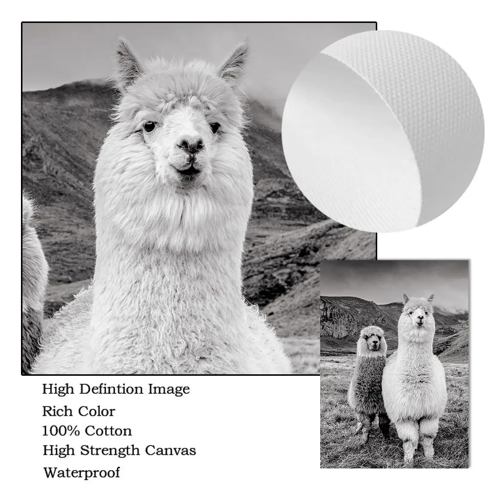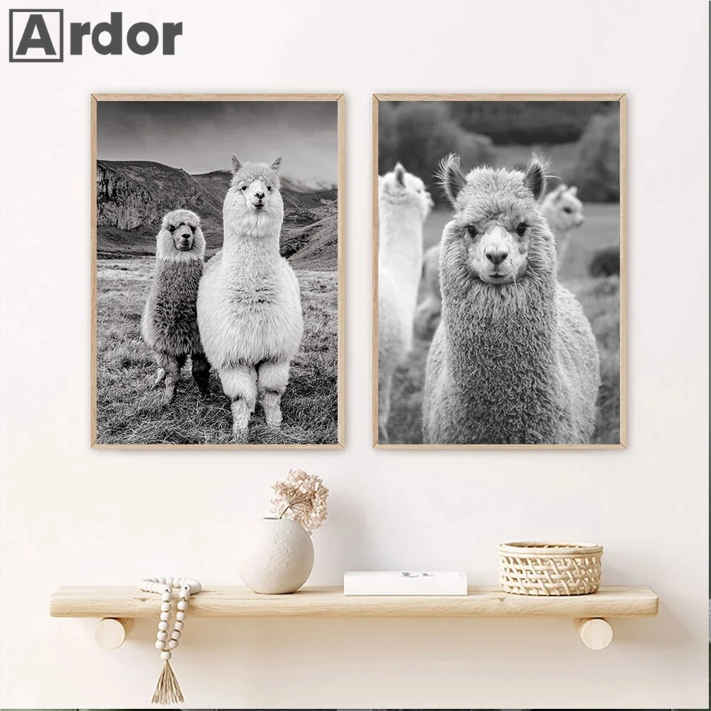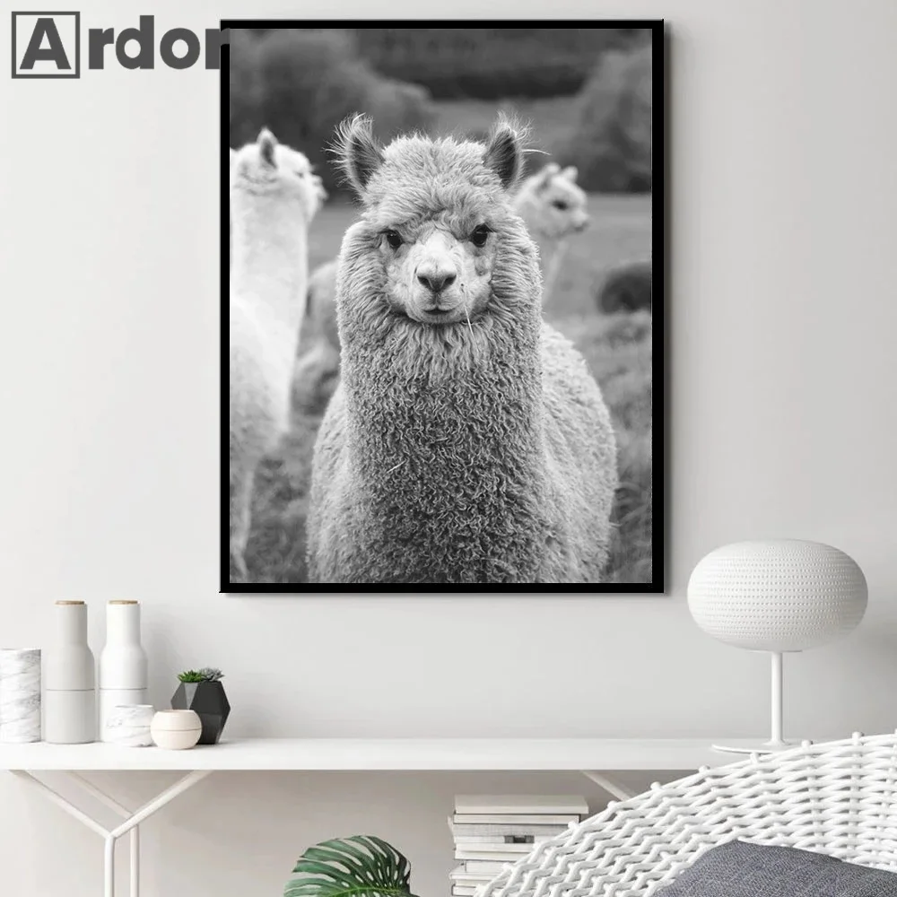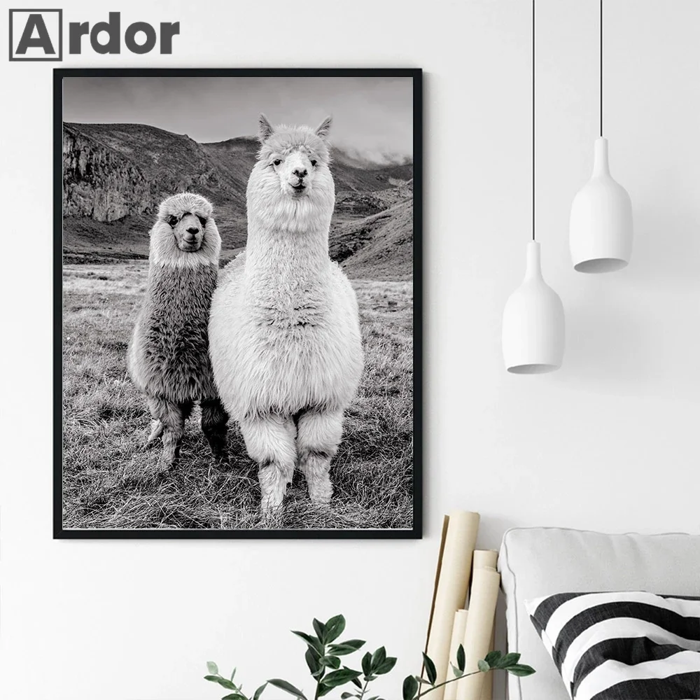 Плакат с альпакой, животное, холст, художественная живопись, декоративная картина для детской, лама, настенные художественные принты, черно-белая стена, декор для детской комнаты