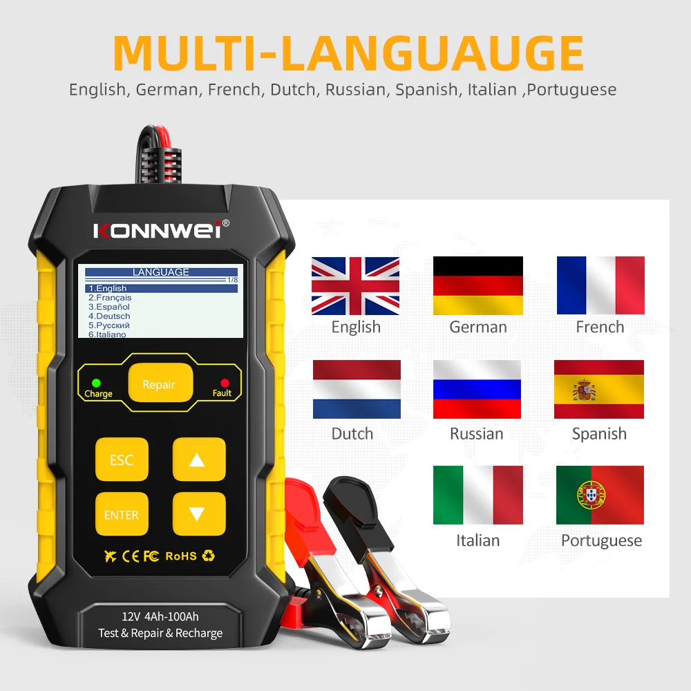 1.【 Универсальное зарядное устройство для аккумулятора 】KONNWEI KW510-это профессиональный Тестер Аккумуляторов 3 в 1, зарядное устройство для аккумуляторов, устройство для обслуживания аккумуляторов (импульсный ремонт), зарядное устройство для трикета и устройство для демонтажа аккумуляторов. Большой цветной ЖК-дисплей и функции, работающие на кнопках, будут более удобны по сравнению с другими аналогичными товарами.2. 【Точная батарея tester】работает годами, но нет идеи о состоянии батареи? Тестер батареи KW510 12v обеспечивает общий анализ состояния батареи, проверяя его заряд напряжения, внутреннее сопротивление, а затем сообщает вам, нужно ли заряжать аккумулятор. Также этот тестер батареи проходит испытание системы подзарядки и зарядки и тестер автомобильного генератора зарядки.3. 【Полностью автоматическая зарядка аккумулятора 】 Зарядка аккумуляторов до 2 вольт, максимальная выходная мощность 12 вольт 5 ампер. Зарядное устройство KW510 не только помогает заряжать батареи, но и адаптирует новейшую технологию импульсного ремонта, ремонт одним нажатием кнопки и автоматически обнаруживает сульфат батареи и расслоение кислоты, чтобы вернуть батареи к жизни и восстановить их производительность.4.【Universal Compatible】 KW510 может проверить, Мы произведем и ремонт всех 12-вольтовой 100-2000CCA свинцово-кислотных аккумуляторных батарей в том числе обычный свинцово-AGM плоская пластина, AGM спираль или аккумуляторная коллоидная батарея. Идеальный тестер автомобильного аккумулятора для диагностики батарей автомобилей, лодок, газонокосилок и т. д.5. 【Самая высокая степень безопасности 】 безопасная зарядка-это самая важная вещь! За исключением умной компенсации температуры, которая подходит для всех климатических условий и автоматического изменения в режиме низкого тока после полной зарядки, KW510 также поддерживает до 8 видов защиты, таких как обратная полярность, перегрузка, перегрузки по току, перегрев, система охлаждения, огнеупорный материал, защита от короткого замыкания и т. д.