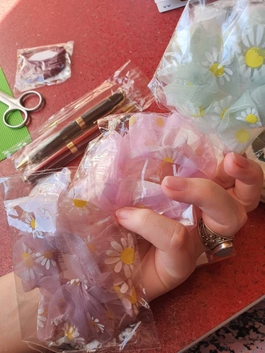 WomenSweet Embroidery Flowers Mesh Scrunchies