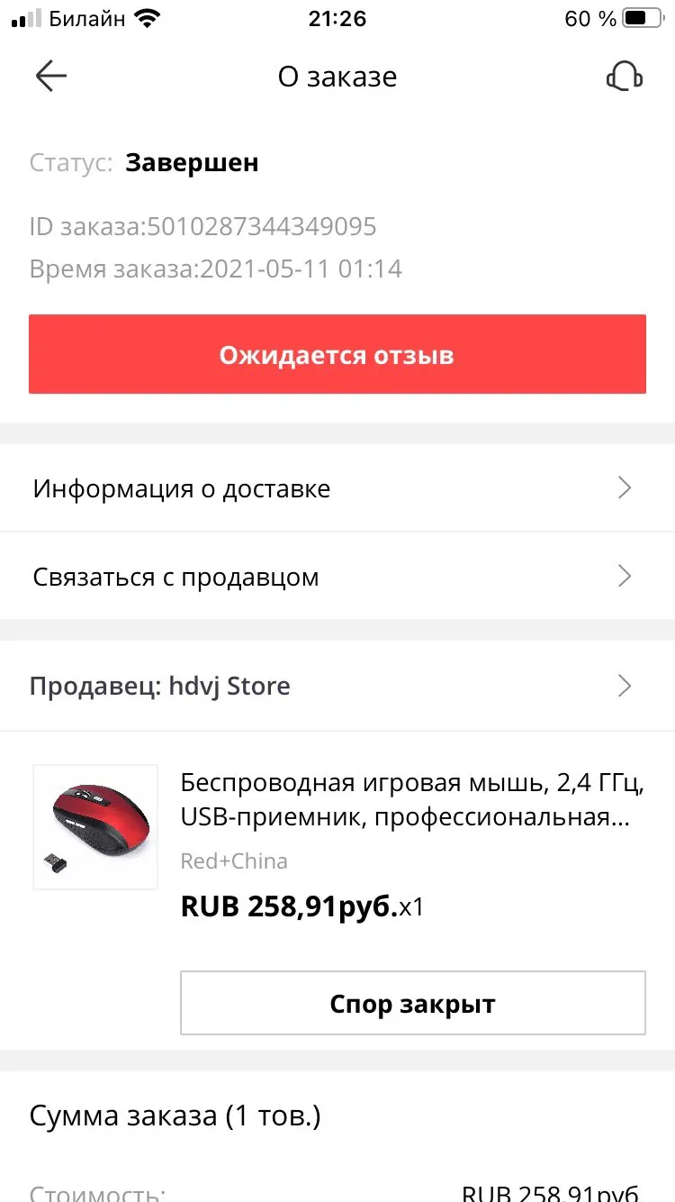Это не продавец-это свинья . Товар отправил на какой-то другой адрес в другой город, там его кто-то получил. Я открыл спор: продавец на письма не отвечает и деньги али не вернули, и скрины приложил, что товар отправлен не по адресу заказа. Полное свинство. Очень разочарован в Али.