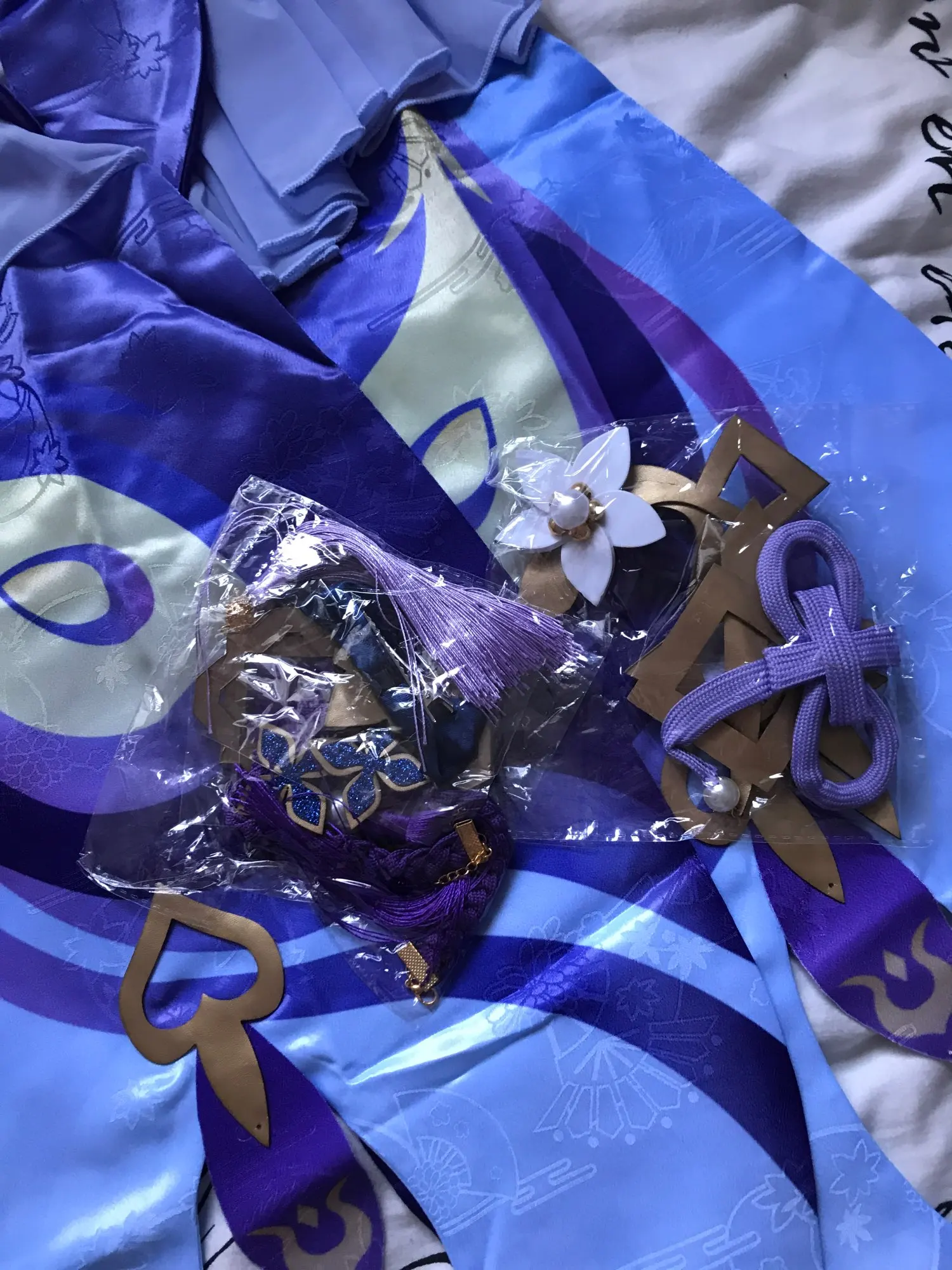 Костюм для косплея Keqing из игры Genshin Impact, парик, платье, аниме