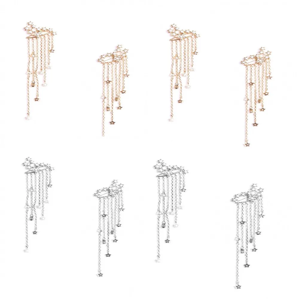 Съемка Серьги-подвески в виде звезды, стразы, длинные кисточки, висячие серьги золотистого и серебристого цвета