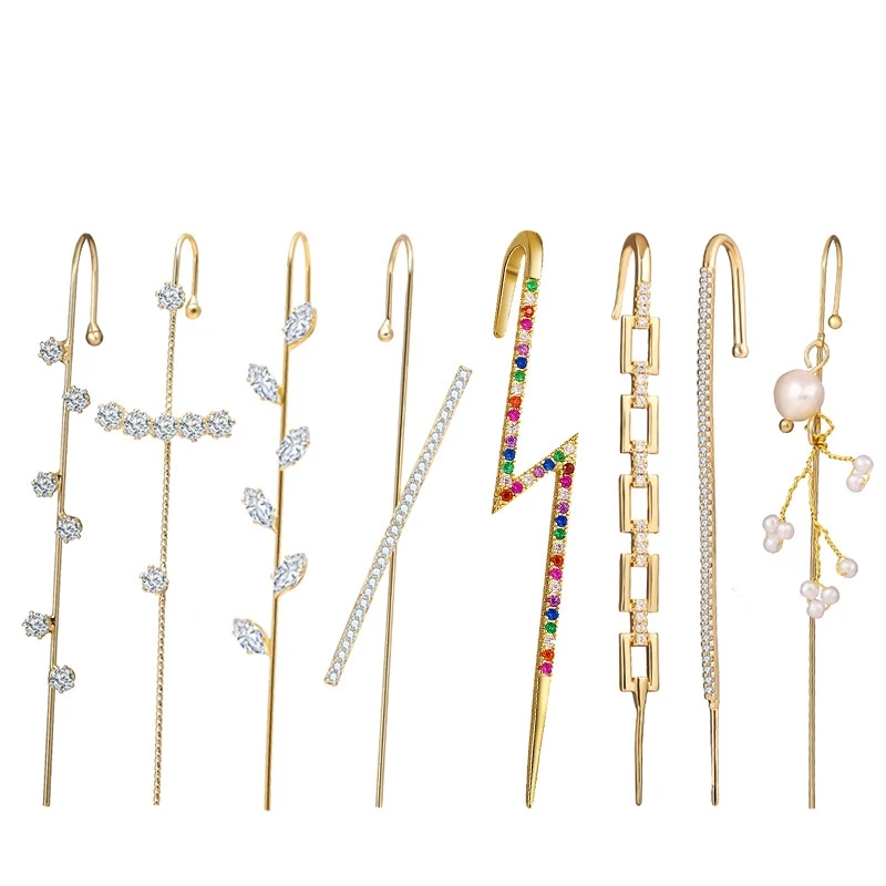Ekopdee богемные серьги на гусеничном крючке для женщин с фианитом серьги для подъема длинные серьги эффектные ювелирные изделия в стиле бохо