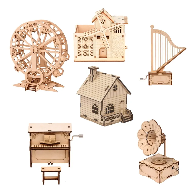 Деревянные игрушки DIY 3D Сборка деревянная головоломка ручной работы дом пианино колесо обозрения модель игрушки детские развивающие игрушки