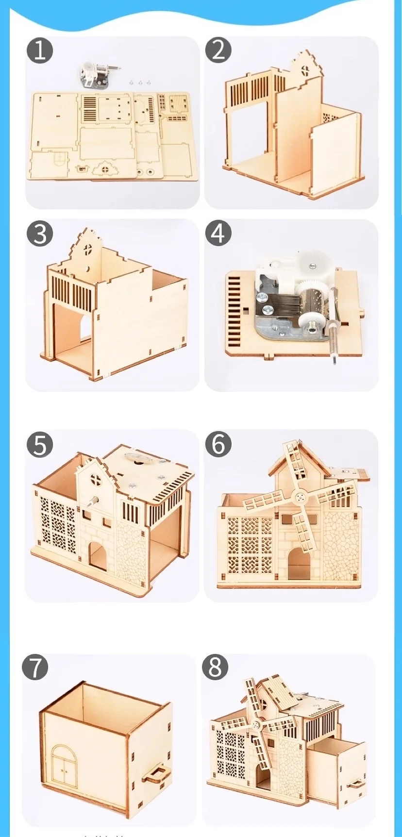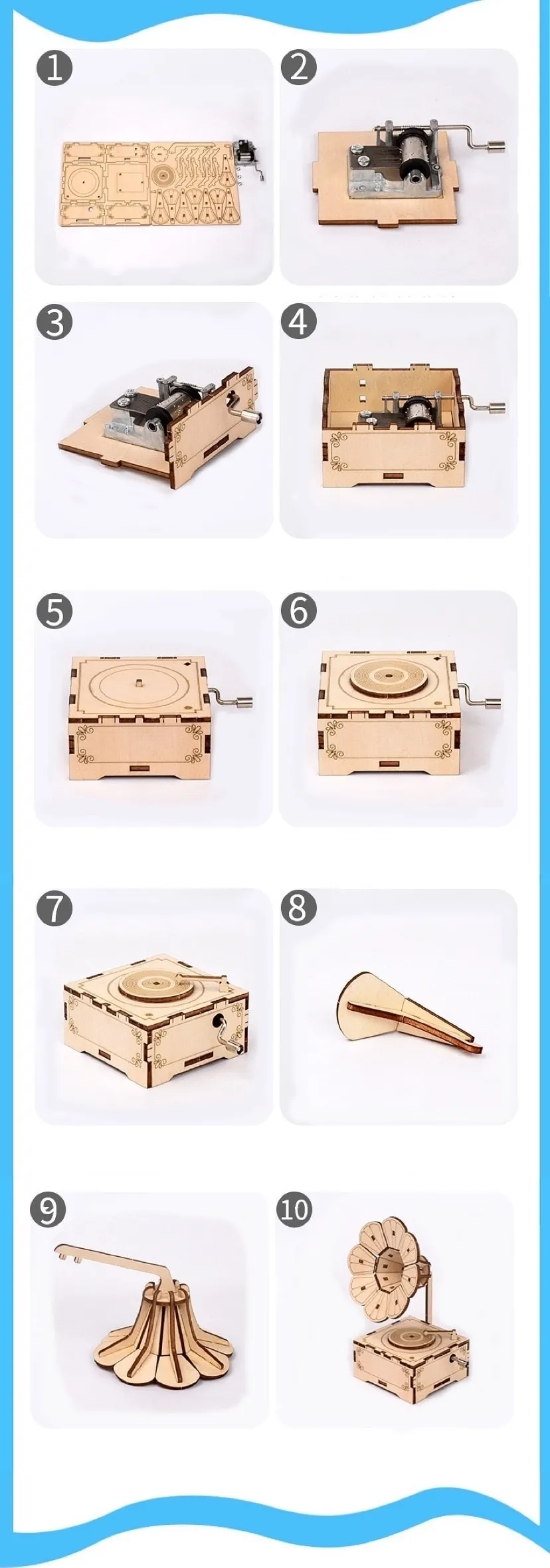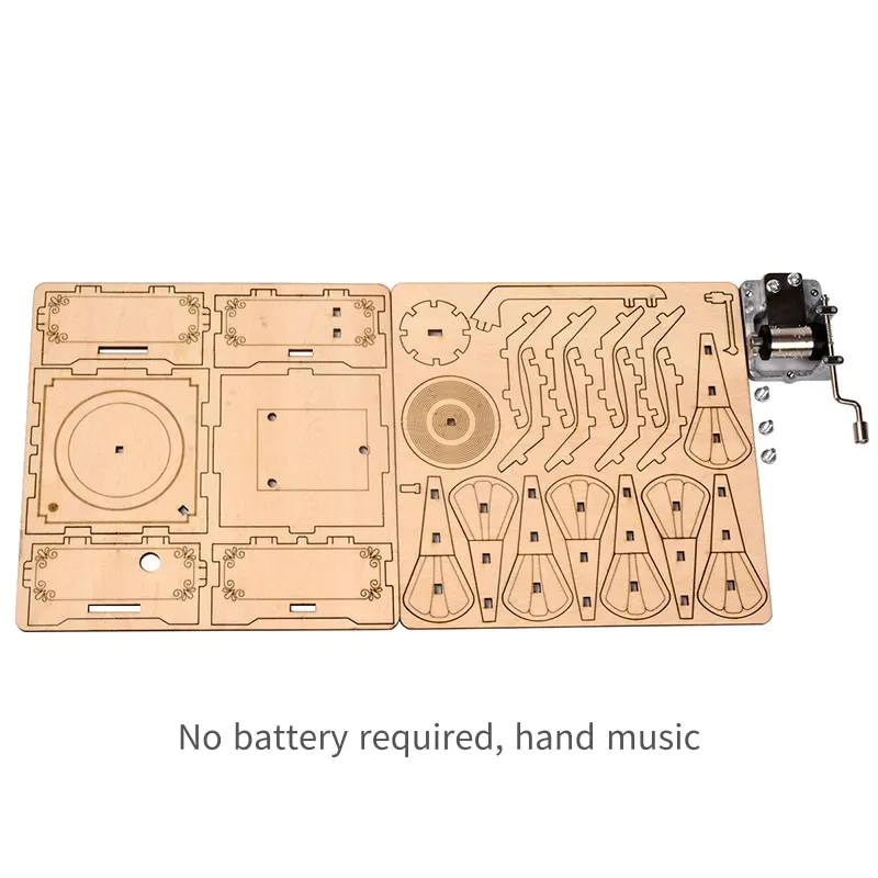 Особенности:1. Этот продукт упакован в OPP пластиковую упаковку. Это модель механической передачи деревянных поделок. Батареи не нужны. Он может излучать музыку, поворачивая ручку. Не нужно клеить ногти при установке. Легко собрать. Лучший подарок для семьи и друзей.2. Детские развивающие игрушки, стимулируют творчество, стимулируют воображение мозга, развивают способность детей создавать новые вещи, развивают навыки мышления, научные эксперименты, улучшают научные знания детей, открывают мышление, тренируйте навыки рук, тренируйте тонкие движения, улучшайте навыки рук и реагируйте более чувствительно. Способность к концентрации, улучшает внимание детей к естественным наукам.Пункт продажи:1. Этот продукт использует экологически чистую древесину, технологию лазерной гравировки, высокую точность, отсутствие заусенцев, отсутствие травм рук, безопасность и санитария.Примечание: Потому что продукт запечатан, при сборке смазывайте шестерни, чтобы сделать шестерни вращаться более плавно.