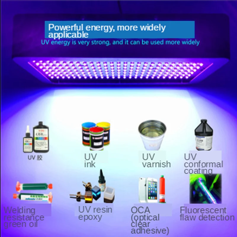 1. Самым большим преимуществом является холодный светильник, потому что он не будет производить высокую температуру на поверхности печати, он подходит для печати на различных термочувствительных материалах.2. Длительный срок службы. По сравнению с обычными аккумуляторами оборудование для отверждения УФ излучением, эти советы помогут продлить срок службы изделия из ртутной лампы составляет всего 800-3000 часов, а также эти советы помогут продлить срок службы изделия для защиты от УФ лучей Светодиодный УФ отверждения системы может достигать 20000-30000 часов.3. Без загрязнения и экологически чистые, традиционный метод ртутной лампы высокого давления, есть ртуть в трубке, удаление отходов и транспортировка очень хлопотные, И неправильное лечение приведет к серьезному загрязнению окружающей среды. СВЕТОДИОДНЫЙ Прибор для отверждения использует полупроводники, чтобы издавать светильник, и нет загрязнения окружающей среды.4. Интенсивность выходного УФ-светильник Высокая и стабильная и равномерная. Мощный УФ-светодиодный чип и специальная оптическая конструкция используются для достижения высокой точности и высокой интенсивности ультрафиолетового светильник облучения; Ультрафиолетовый светильник выход достигает 6800uW/cm2 интенсивность облучения.5. Простая установка и экономия пространства. Объем светодиодный отверждающей машины составляет всего 1/5 размера традиционной отверждающей машины, что упрощает установку оборудования и уменьшает площадь, занятую производственной площадкой.Место использования: Широко используется d в УФ-Клее, УФ-чернилах, УФ-Лаке (светодиодный), УФ-экспозиции и т. Д.Примечание: длина волны фиолетовых отверждающих ламп, произведенных нашей фабрикой, выше 360 нм, что находится в безопасном диапазоне, но следующие пункты должны быть обращены внимание во время конкретной операции: 1. Не смотрите непосредственно на источник УФ-светильник Светодиодный УФ-отверждающий светильник в течение длительного времени; 2. Не подвергайте кожу ультрафиолетовому светильник в течение длительного времени; 3. Не часто сгибайте кабели отверждающей лампы; 4. Не разбирайте оборудование по желанию.