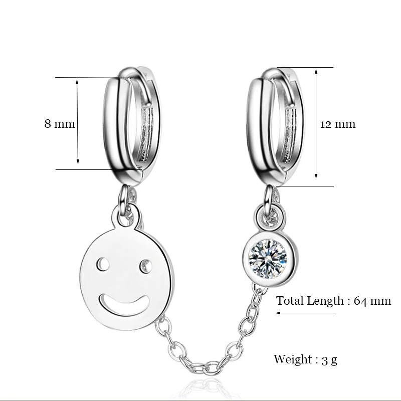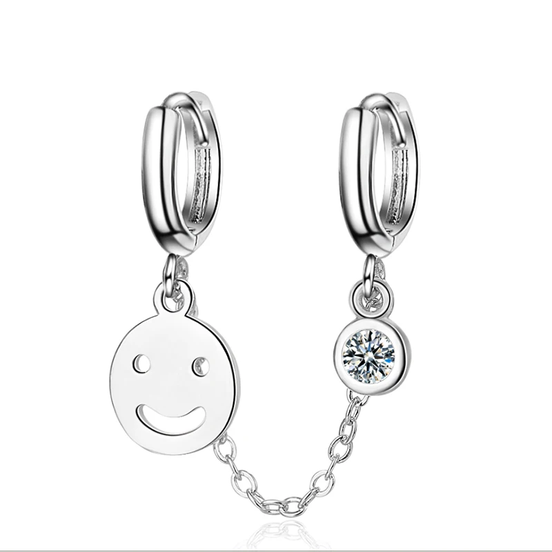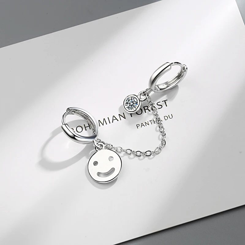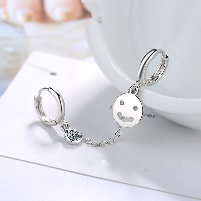 Женские модные серьги-кольца с двумя отверстиями для пирсинга, цепочка с кисточками, улыбающееся лицо, циркониевый камень Блестящие модные серьги в богемном стиле, подарки